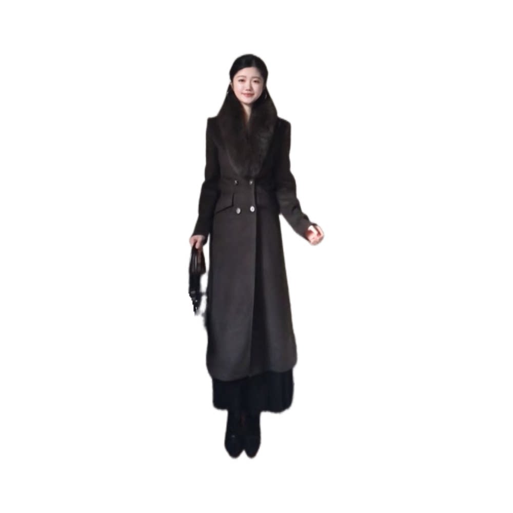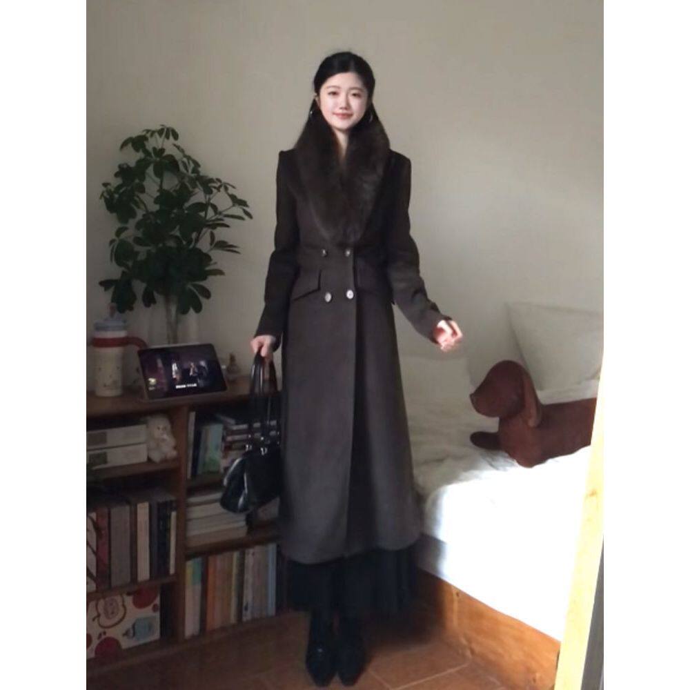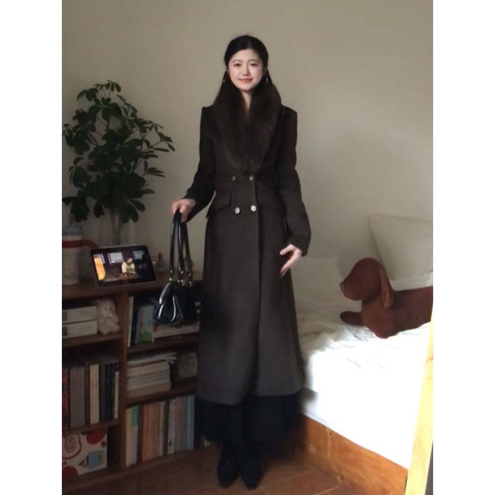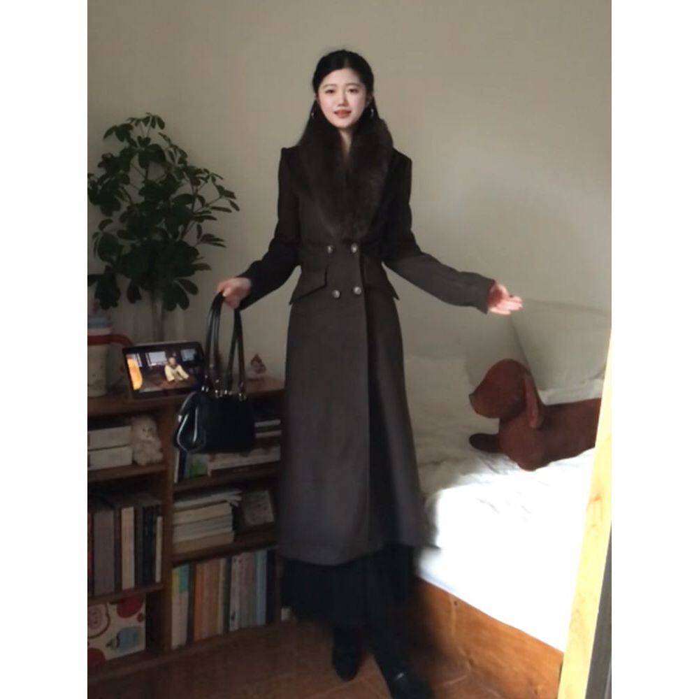 午后拿铁 复古英伦风毛领可拆卸收腰正肩气质长款毛呢大衣外套女