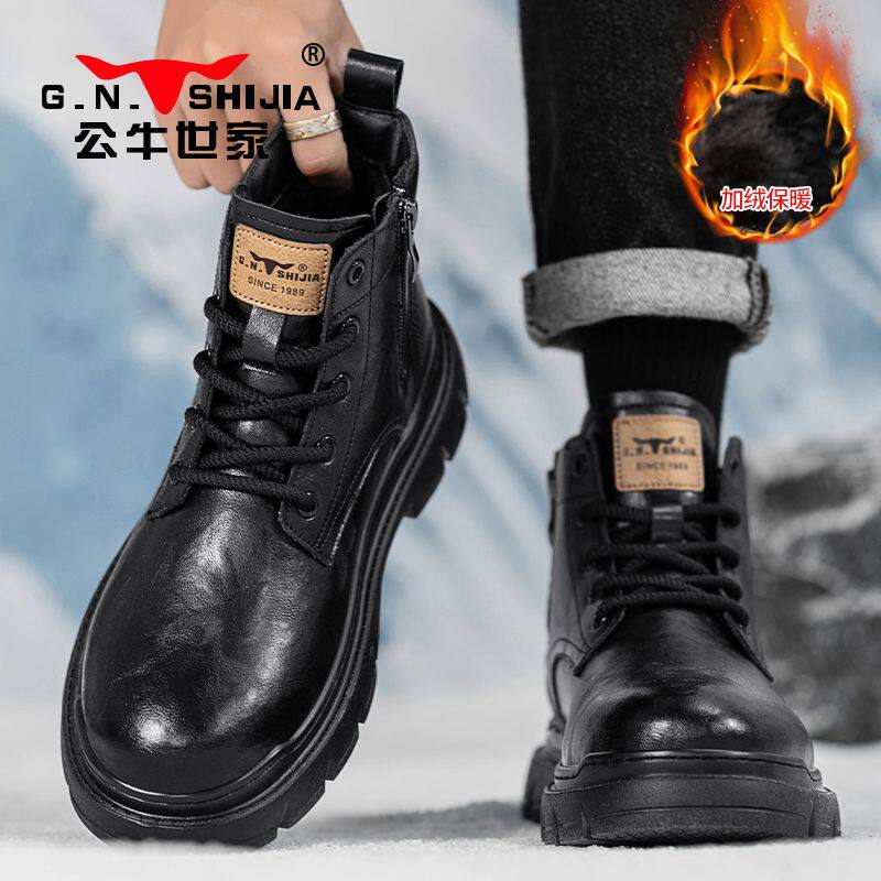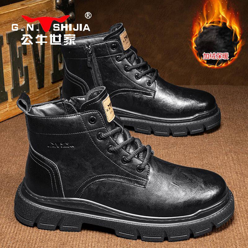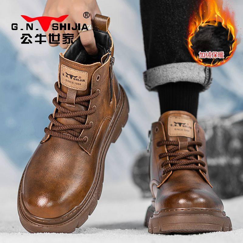 首页> 鞋包> 公牛世家马丁靴男款秋冬款中帮加绒男鞋复古工装鞋英伦风厚底靴子