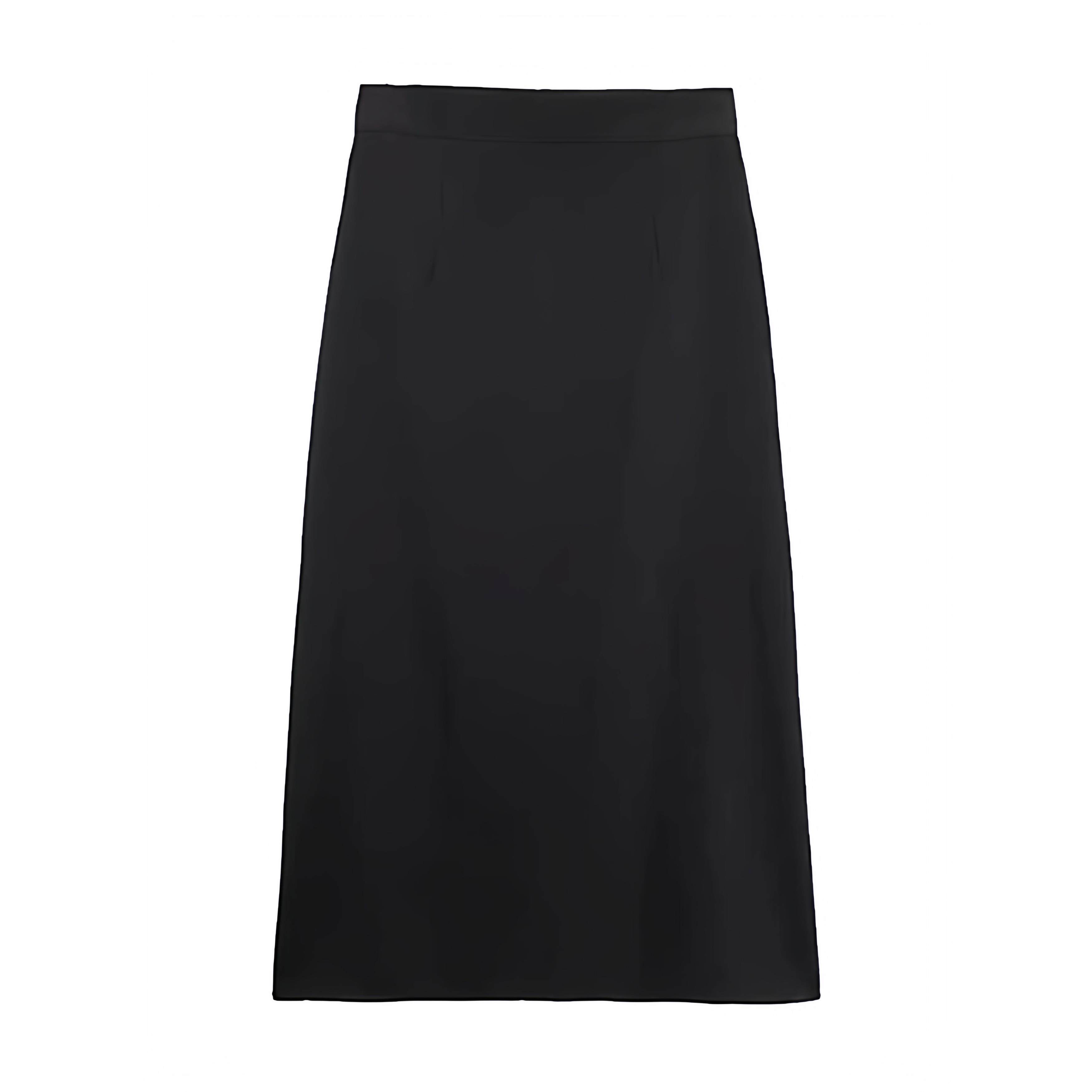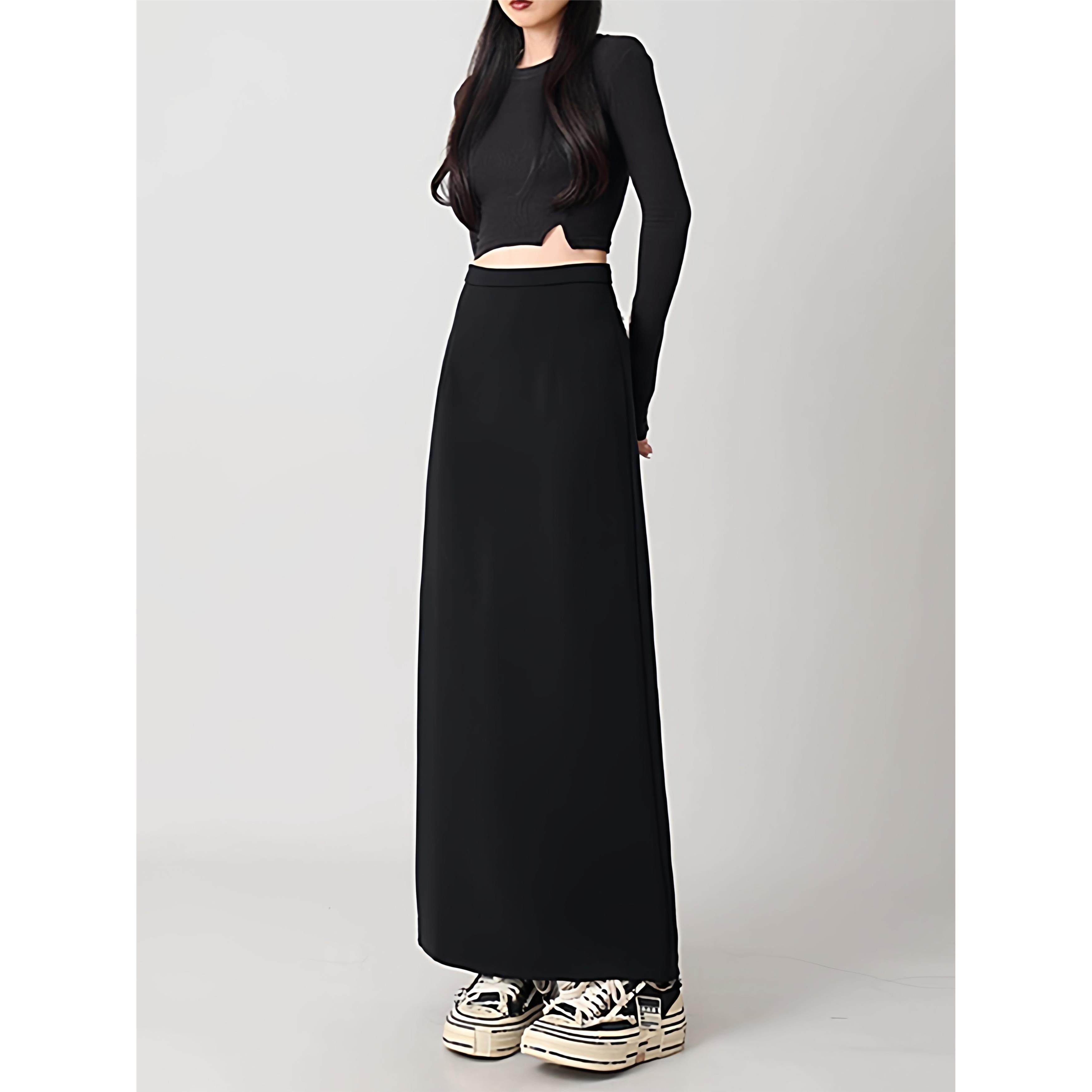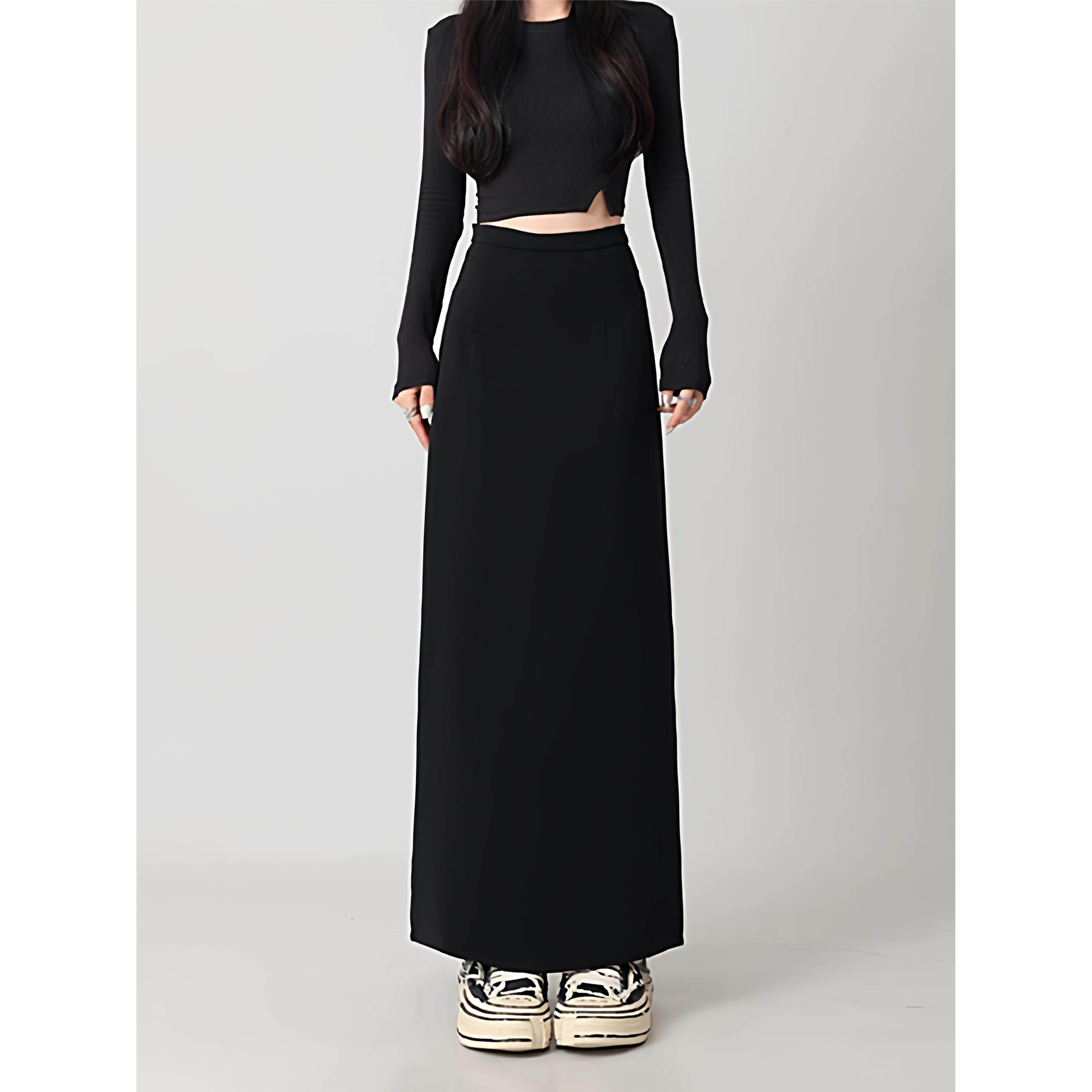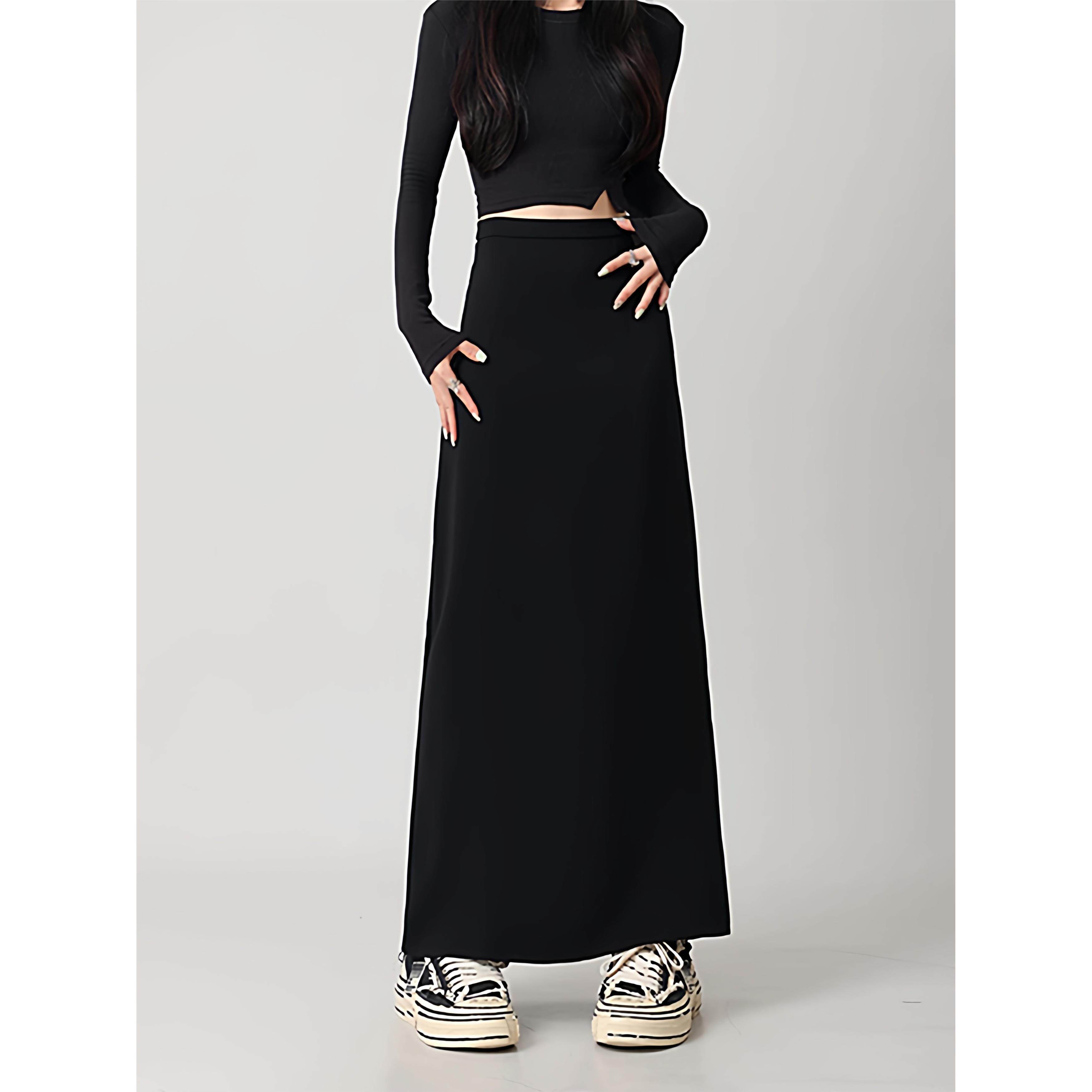 巨好看的大码黑色毛呢款半身裙女胖妹妹高腰mm显瘦后开叉直筒长裙