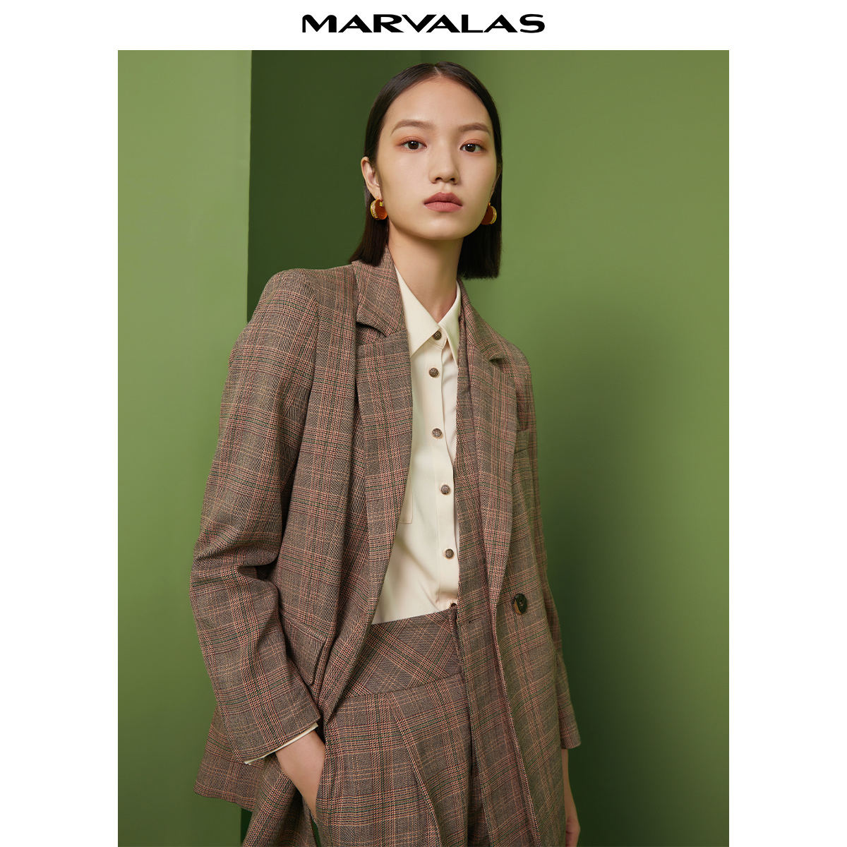 【呼呼严选专享】曼德诗格纹西装秋季新品复古设计感气质通