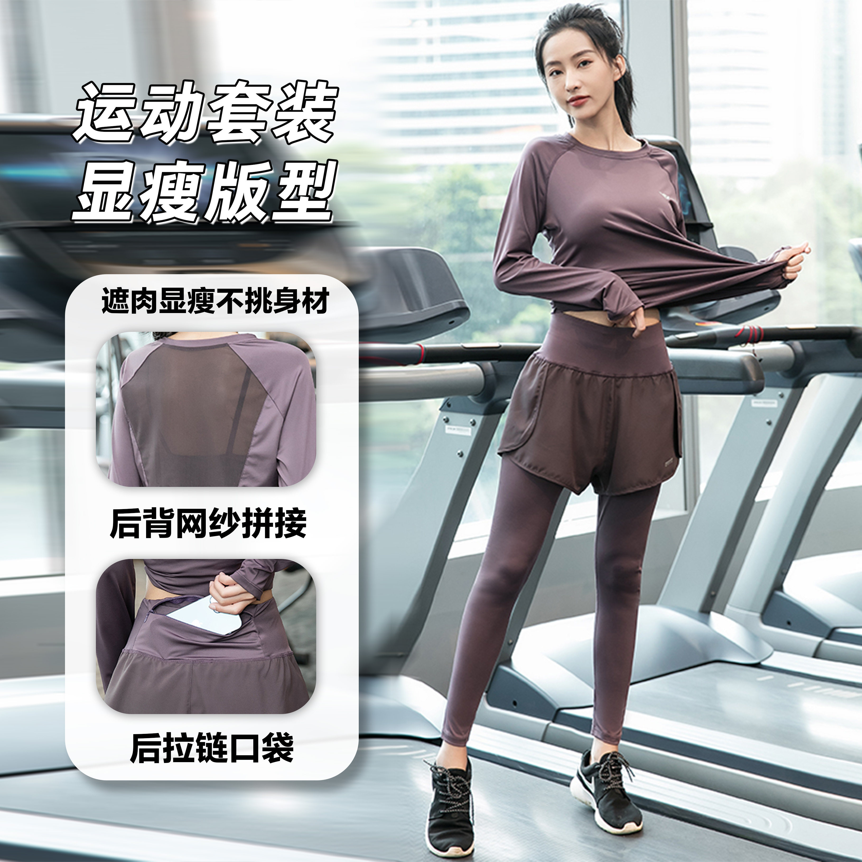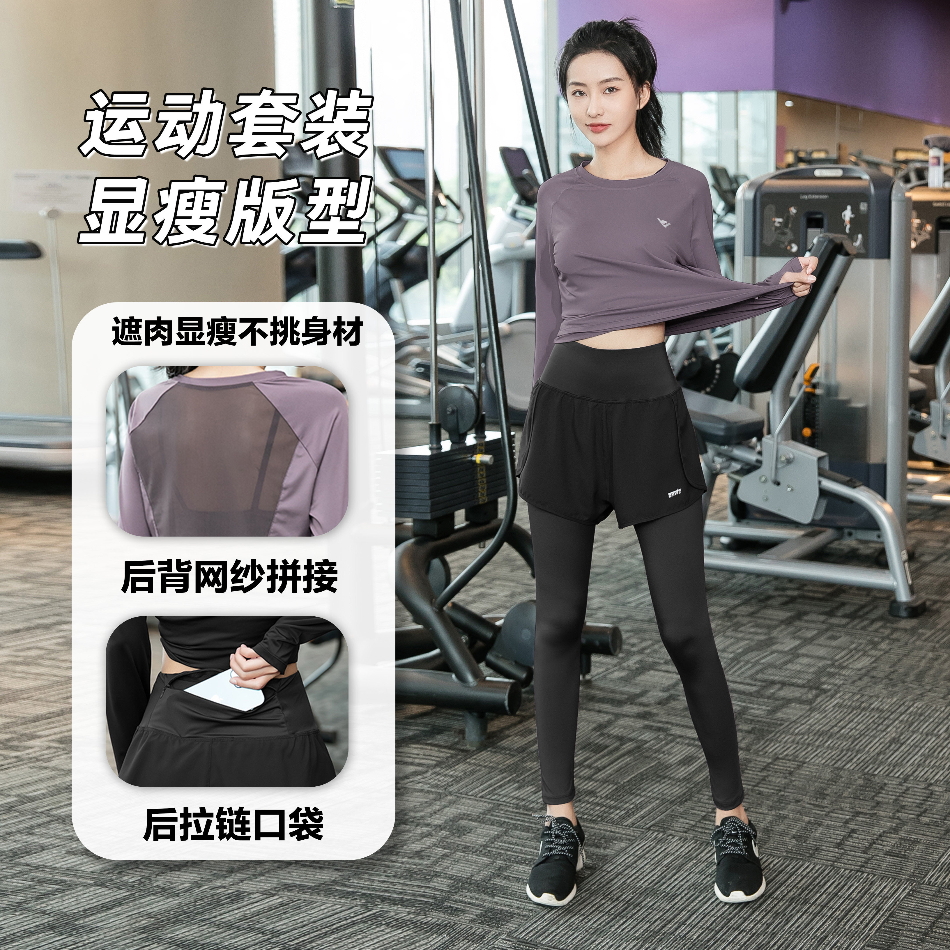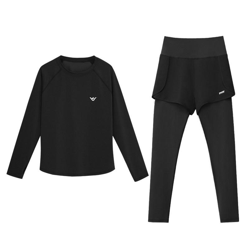 春秋长袖微胖显瘦女士跑步晨跑服宽松套装速干运动健身瑜伽服1190
