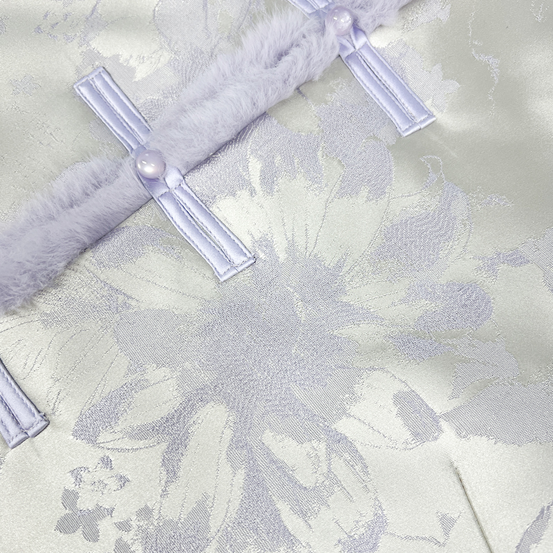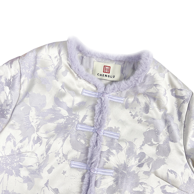 【橙庐】513505原创新中式芍药提花毛领夹毛棉服 秋冬女国风外套