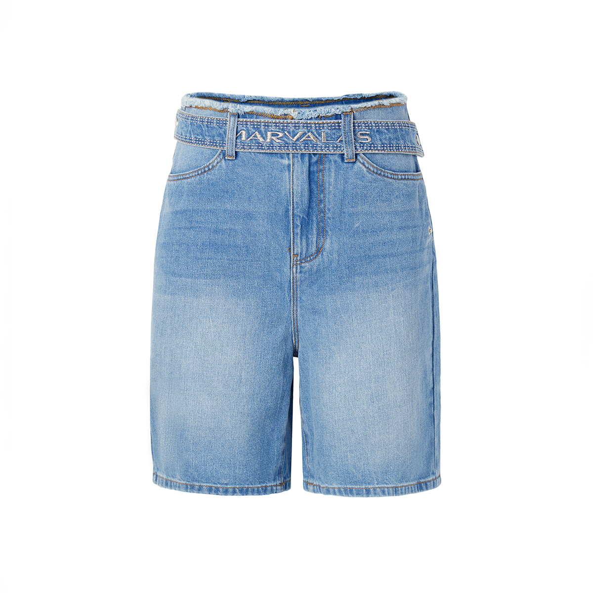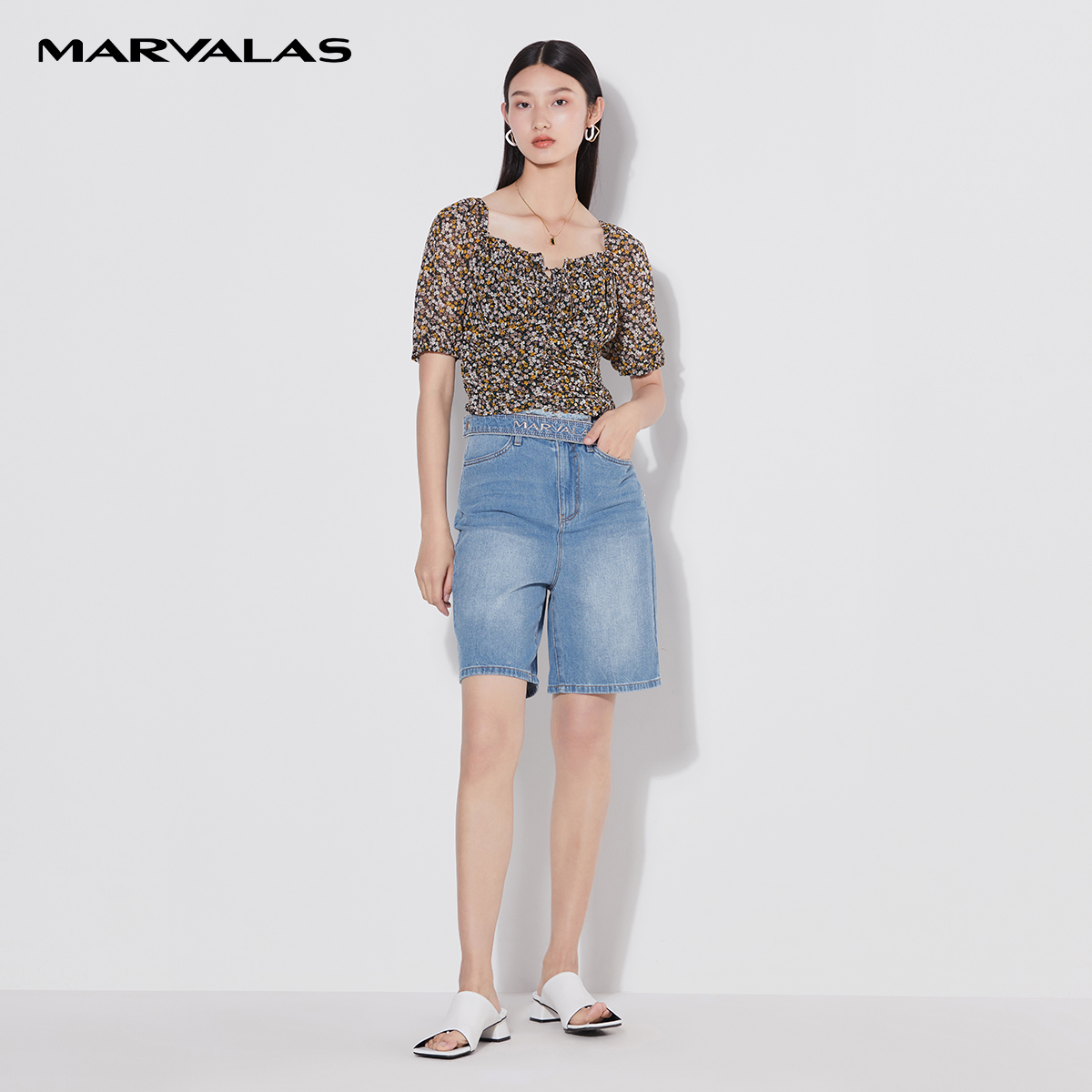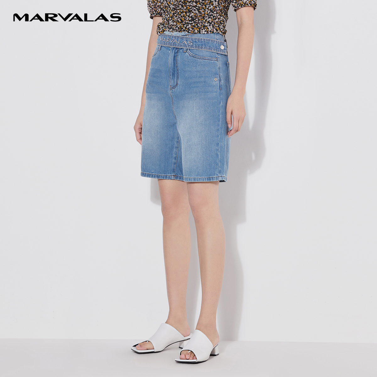 【呼呼严选粉丝专享】曼德诗五分牛仔裤女2022夏高腰直筒阔腿裤设