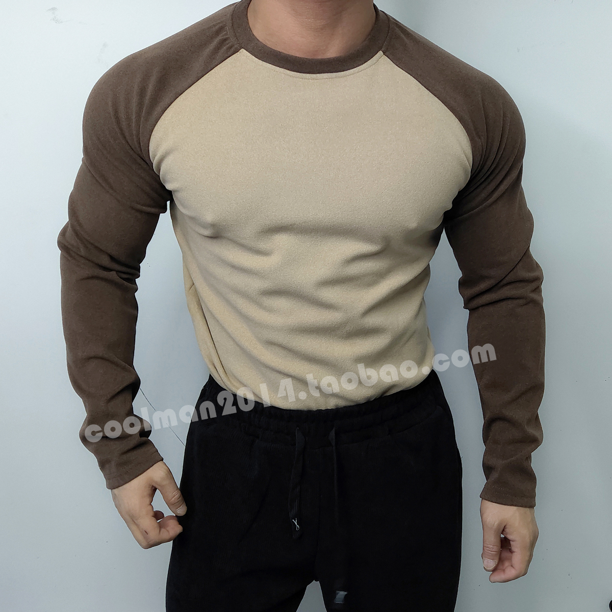 秋冬保暖上衣男士德绒长袖T恤圆领双面绒健身运动内搭德绒打底衫