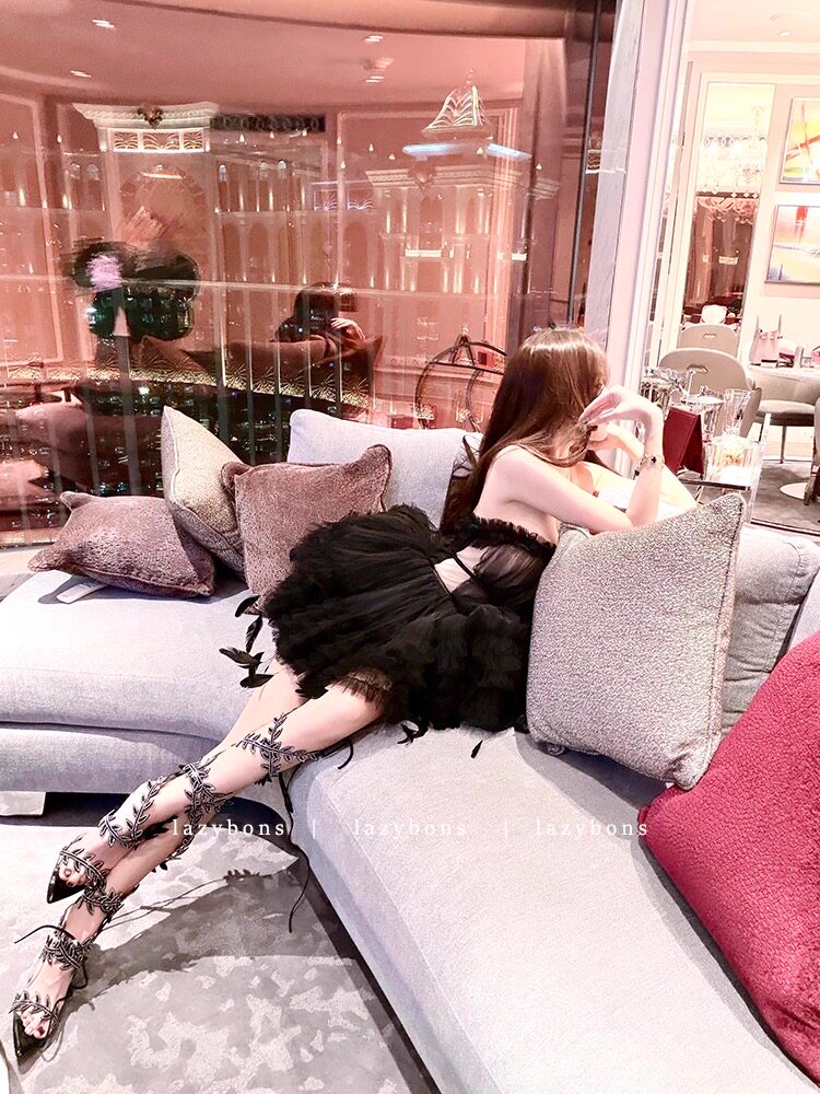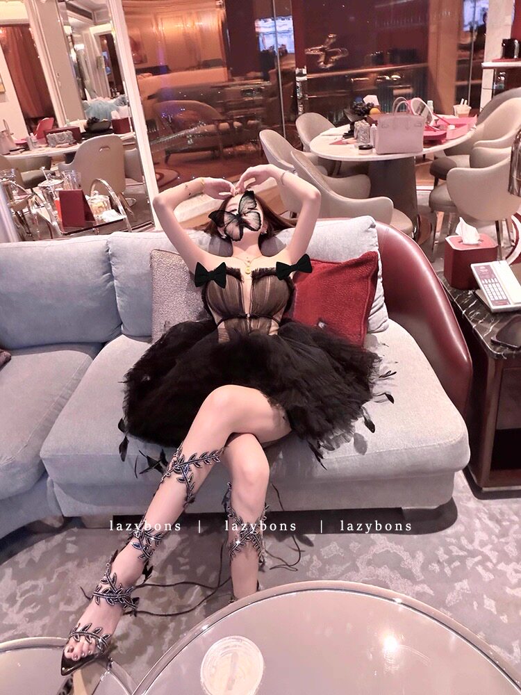 抹胸连衣裙女高级感名媛气质生日晚礼服性感镂空露腰网纱蓬蓬短裙