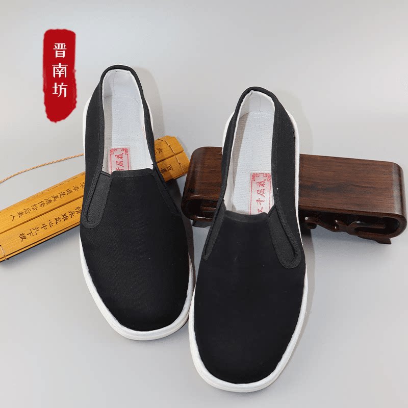 晋南坊手工千层底布鞋半贴底吸汗透气休闲布鞋男士春秋爸爸鞋软底