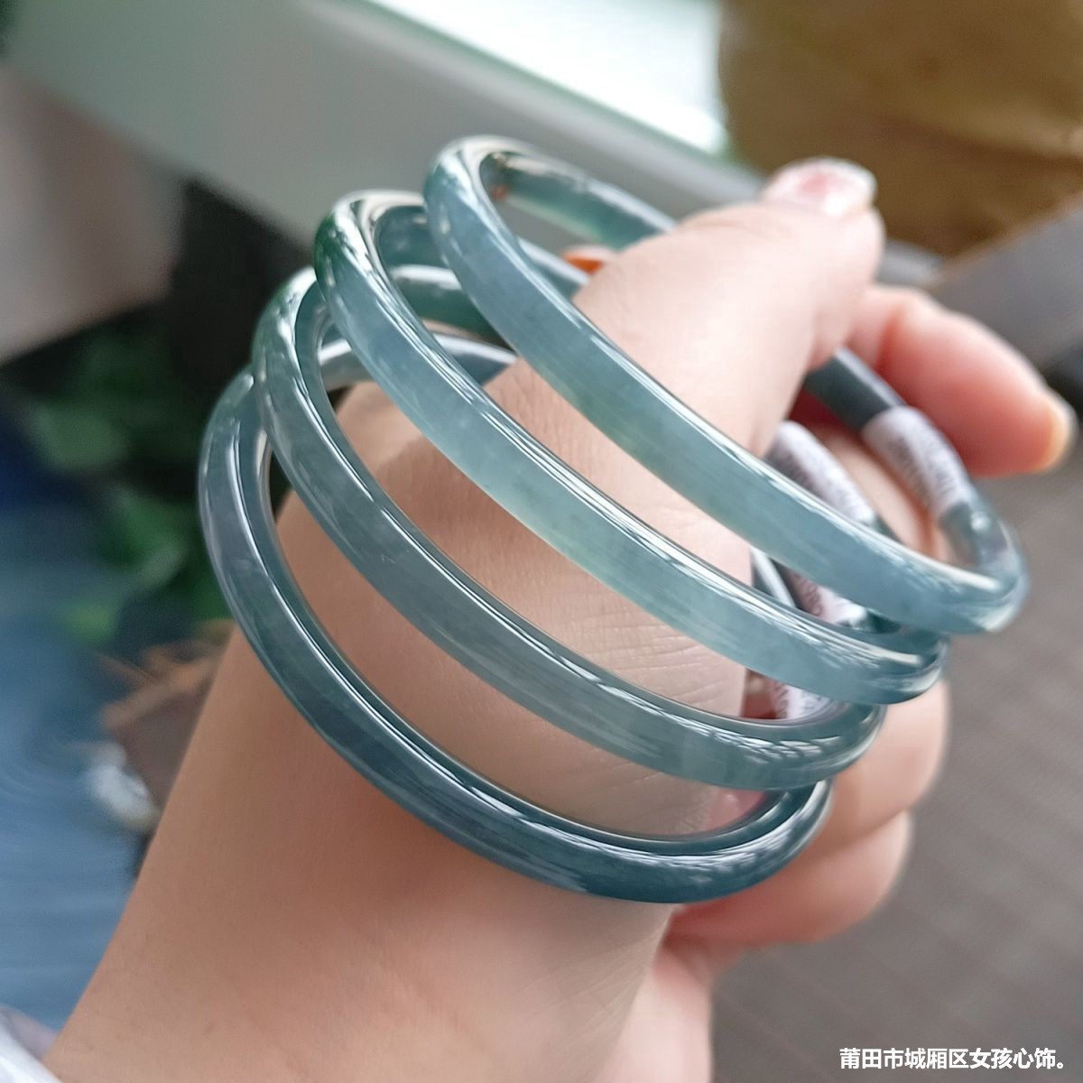 天然缅甸翡翠细圆条手镯少女款叮当镯细糯糯冰种水冰润起胶冰蓝