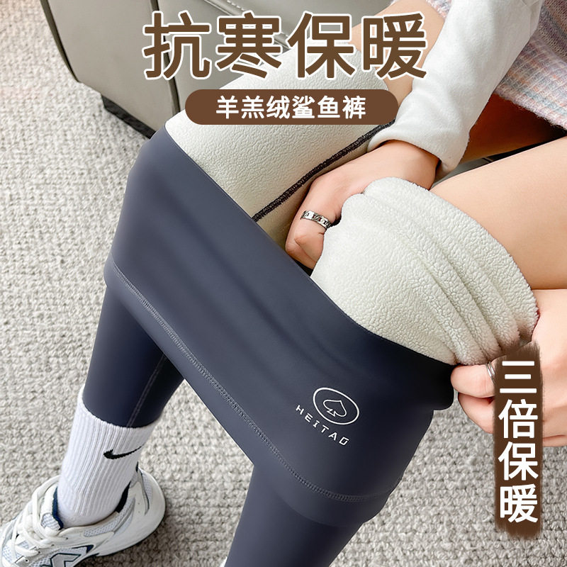 新品福利秋冬加绒加厚保暖外穿芭比裤显瘦高腰瑜伽无痕黑桃打底裤