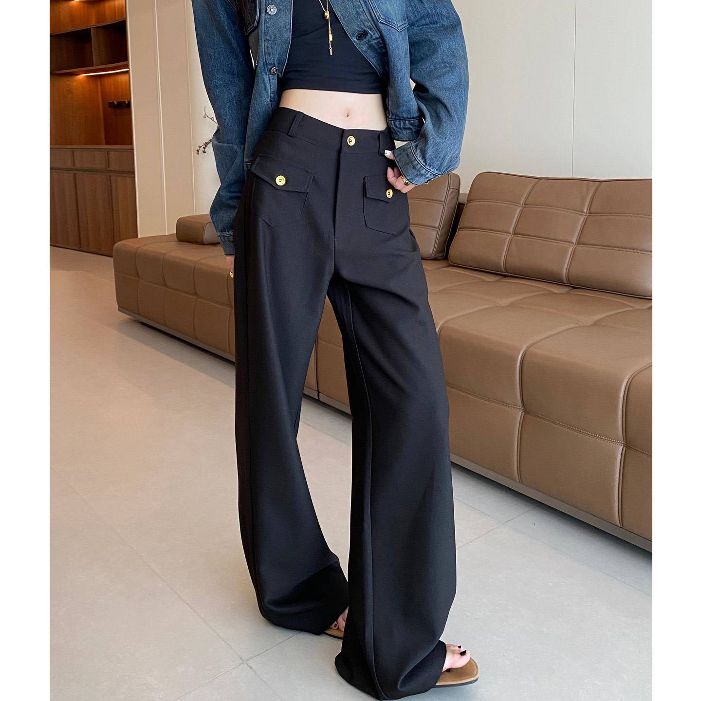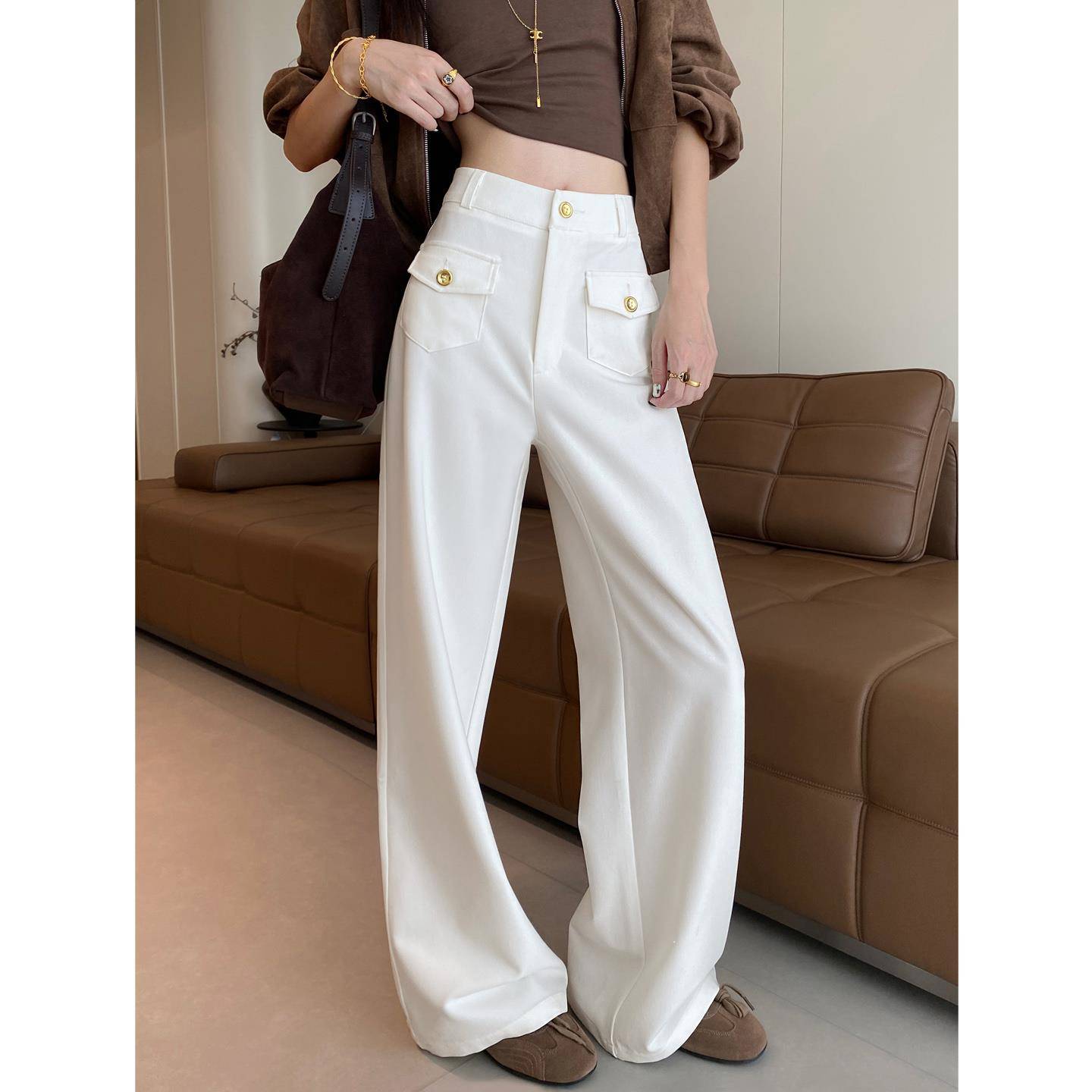 白色阔腿裤女2025春秋季新款高腰垂感显瘦窄版西装裤休闲直筒裤