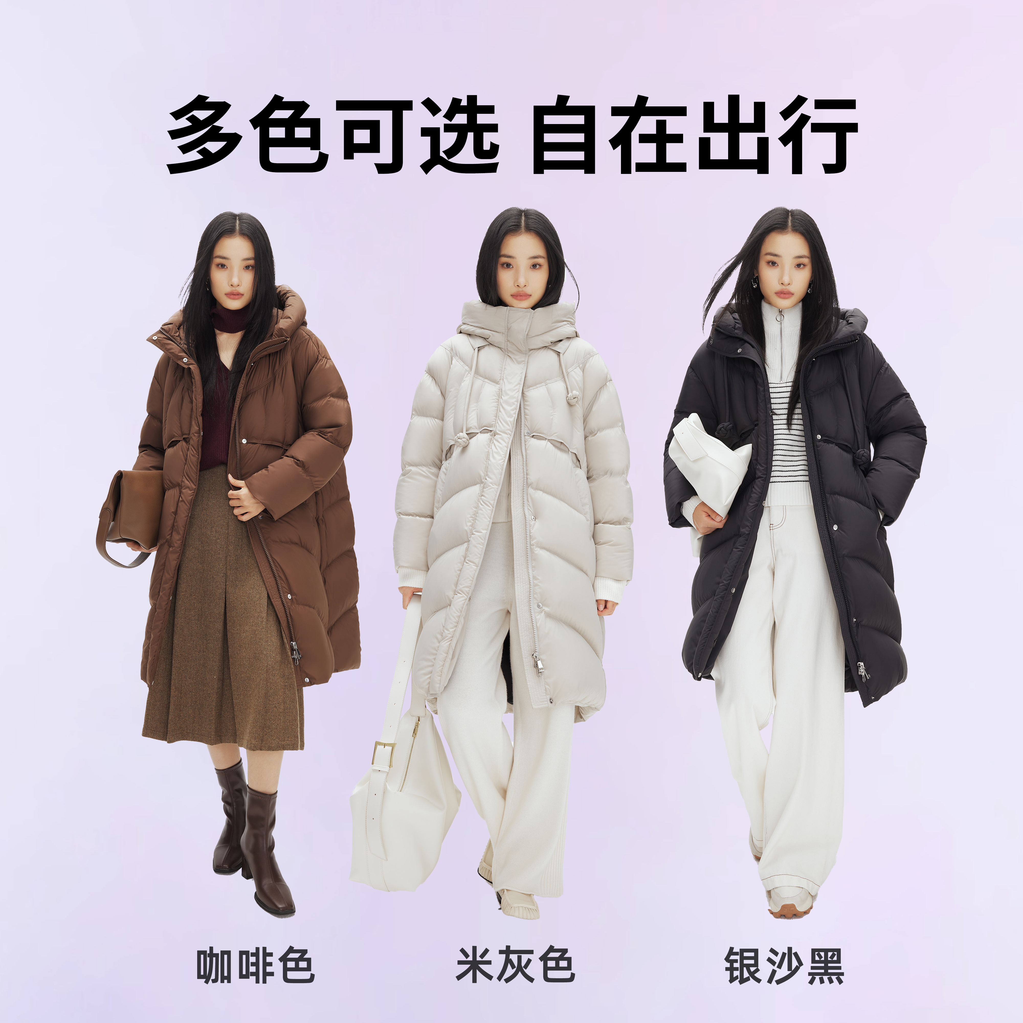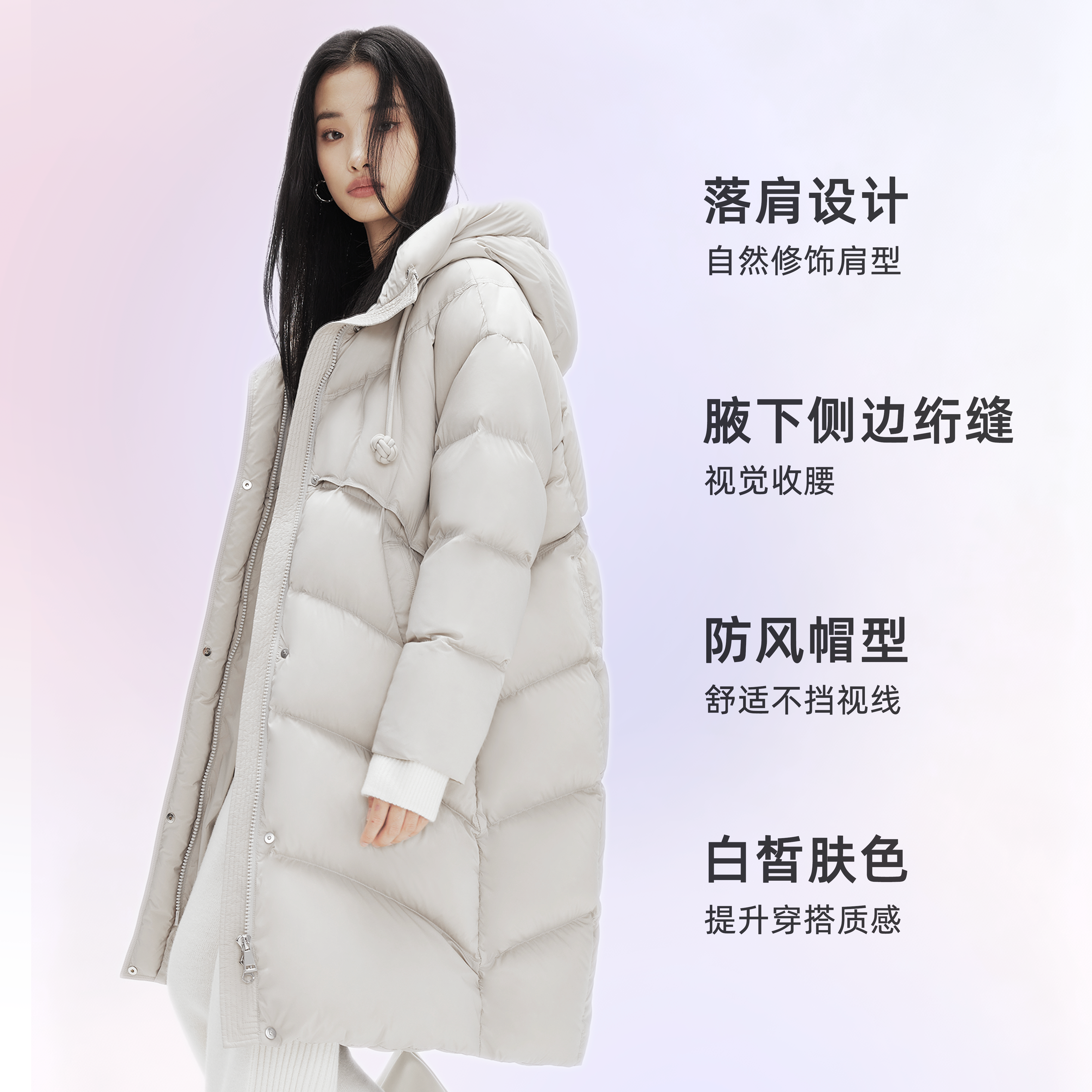 【富婆节】晶岩中长款白鸭绒羽绒服女95%连帽保暖外套冬季-7058