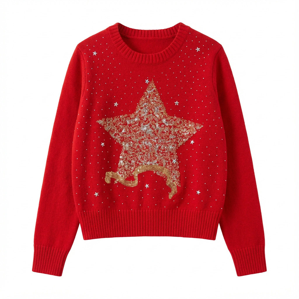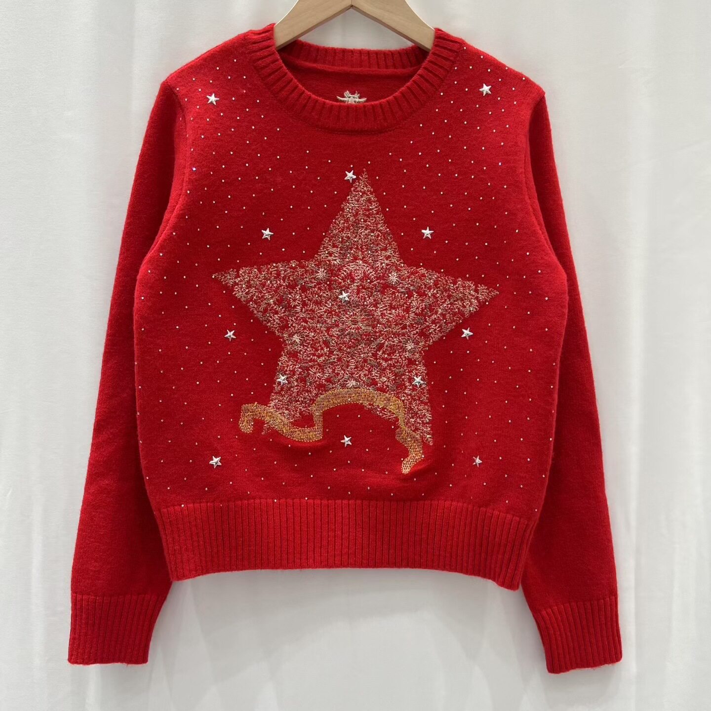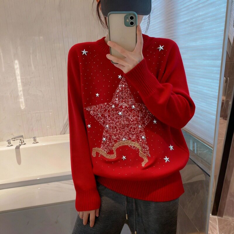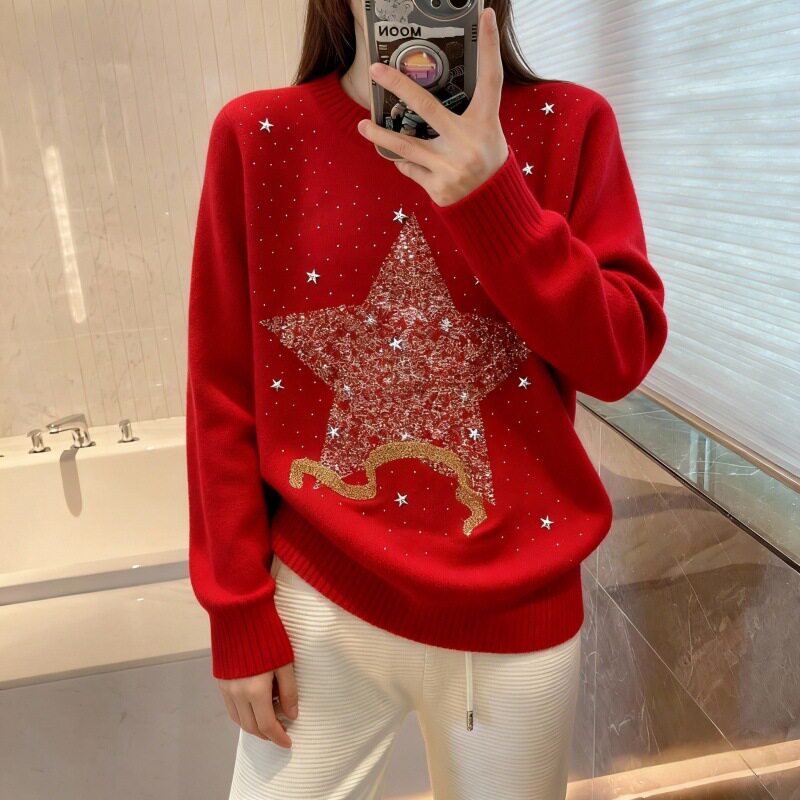 高品质~新款迪家字母五角星烫钻针织长袖开衫宽松百搭女毛衣