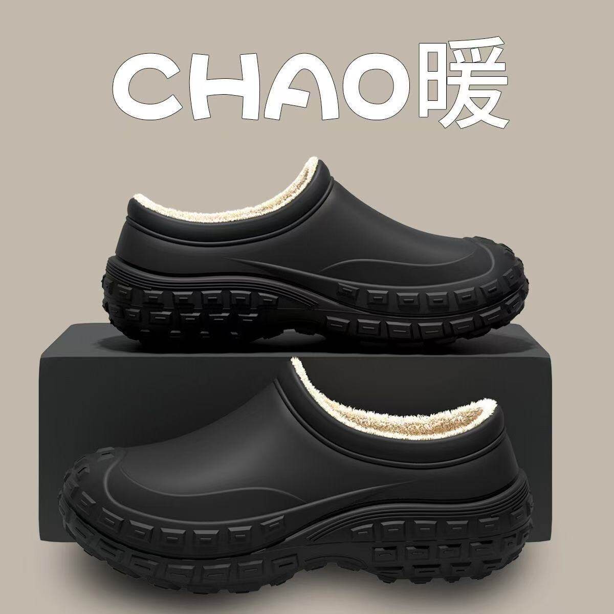 防油耐磨工作鞋加绒厨师鞋男女餐饮厨师冬季保暖防水轻便百搭休闲