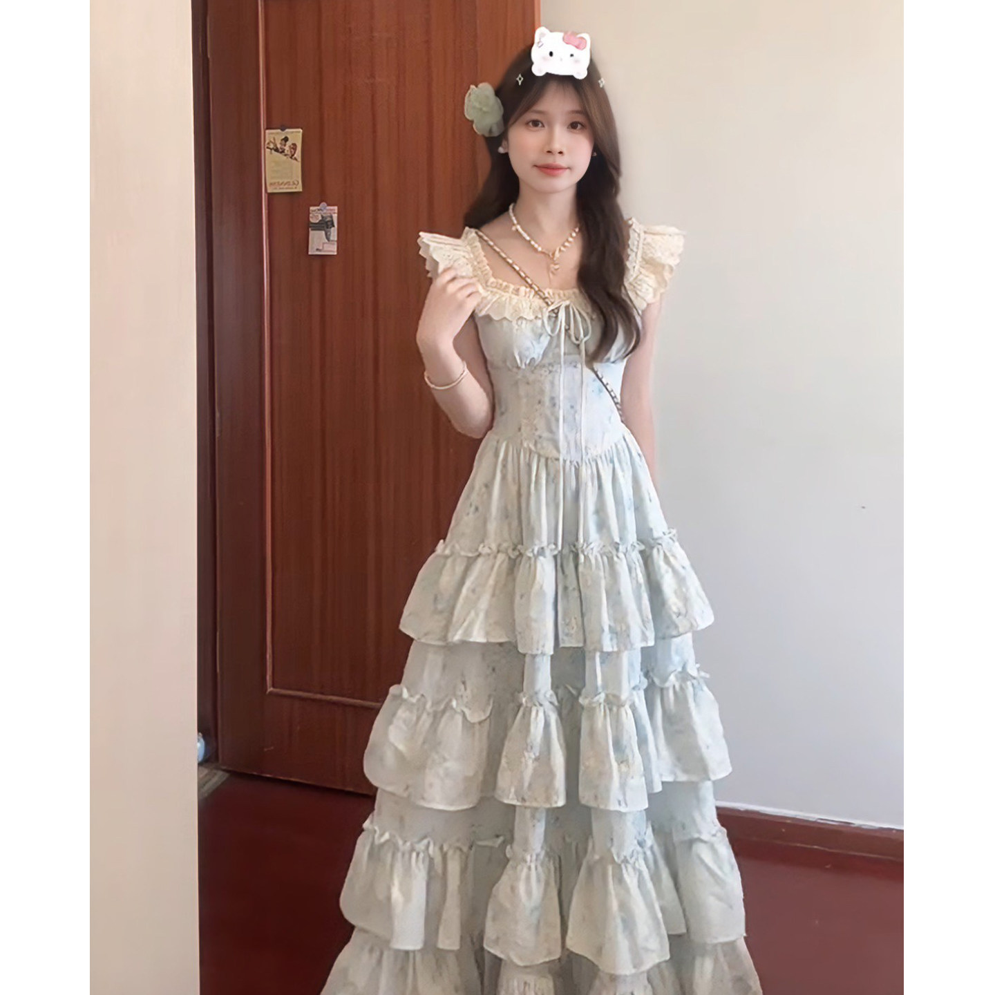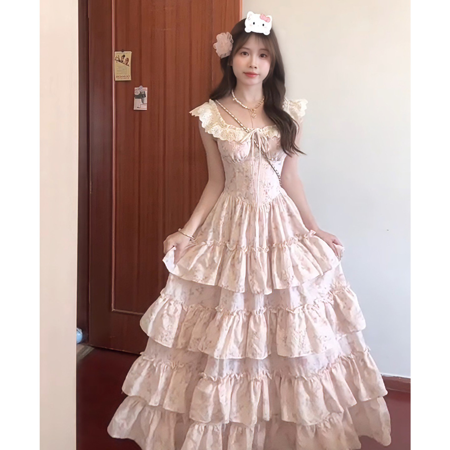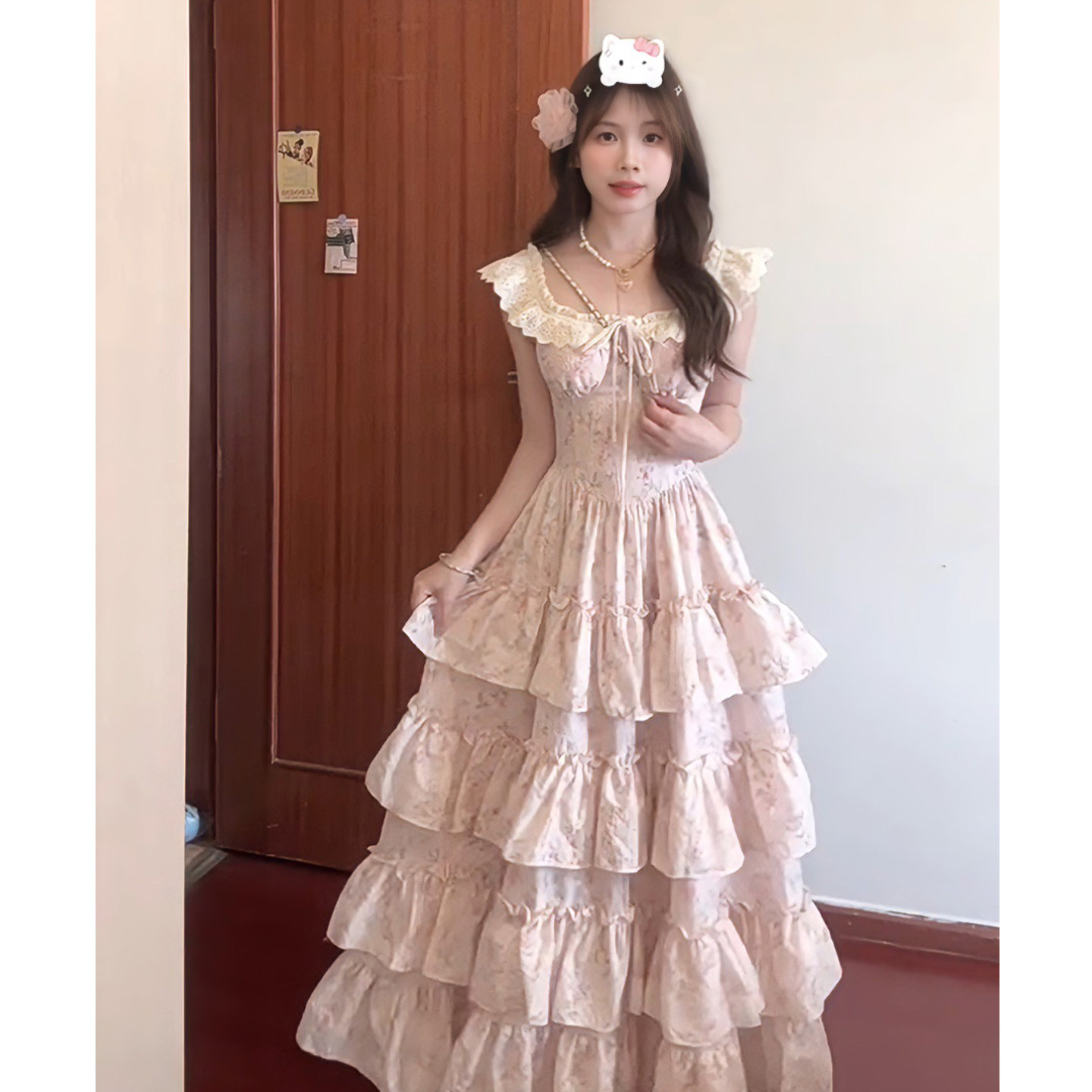 ?院??色碎花蓬蓬洋?女夏多巴胺甜美刺?吊?蛋糕裙收腰?裙