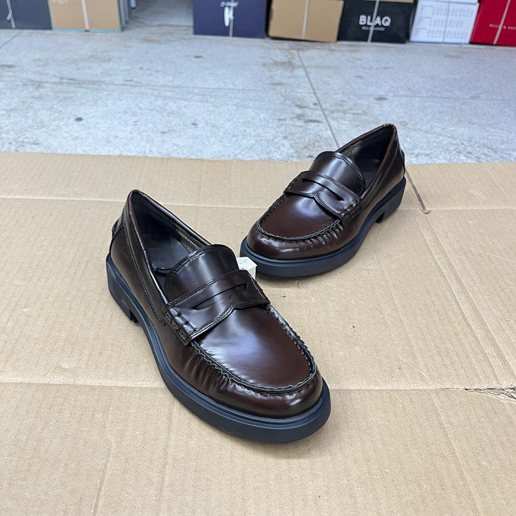 外贸原单女鞋新款时尚shoes圆头纯色粗跟厚底一脚蹬单鞋乐福鞋