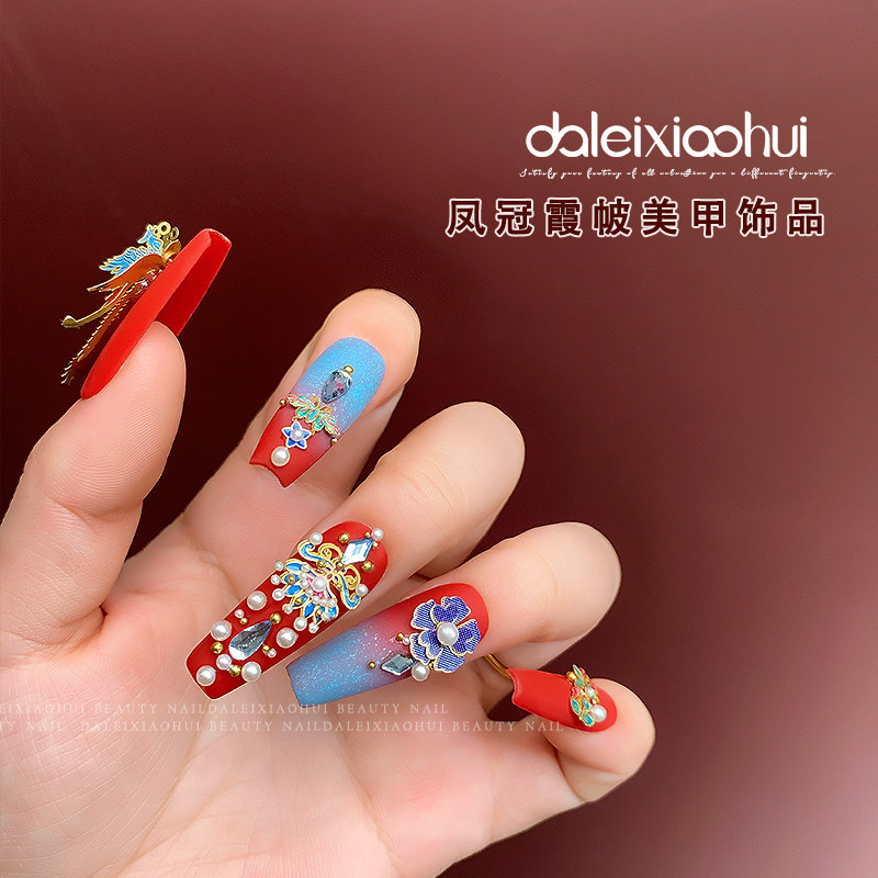 美甲饰品 凤冠霞帔红色新娘新中式国风甄嬛熹妃回宫护甲配件939