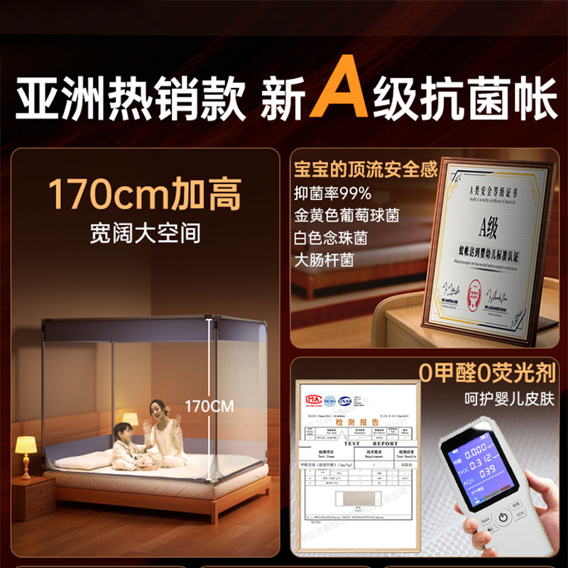 首页> 居家> 抗菌蚊帐b家用卧室2023新款高级儿童防摔蒙古包免安装加密蚊帐202