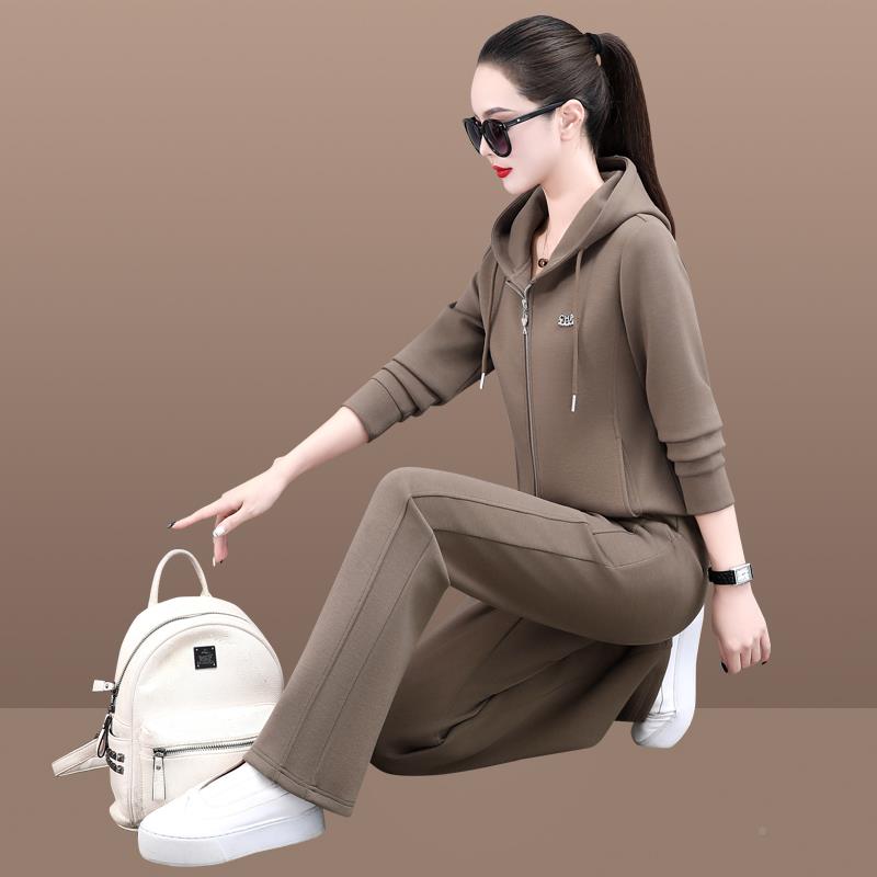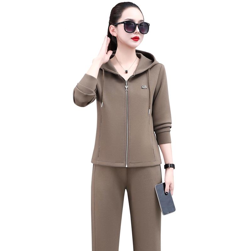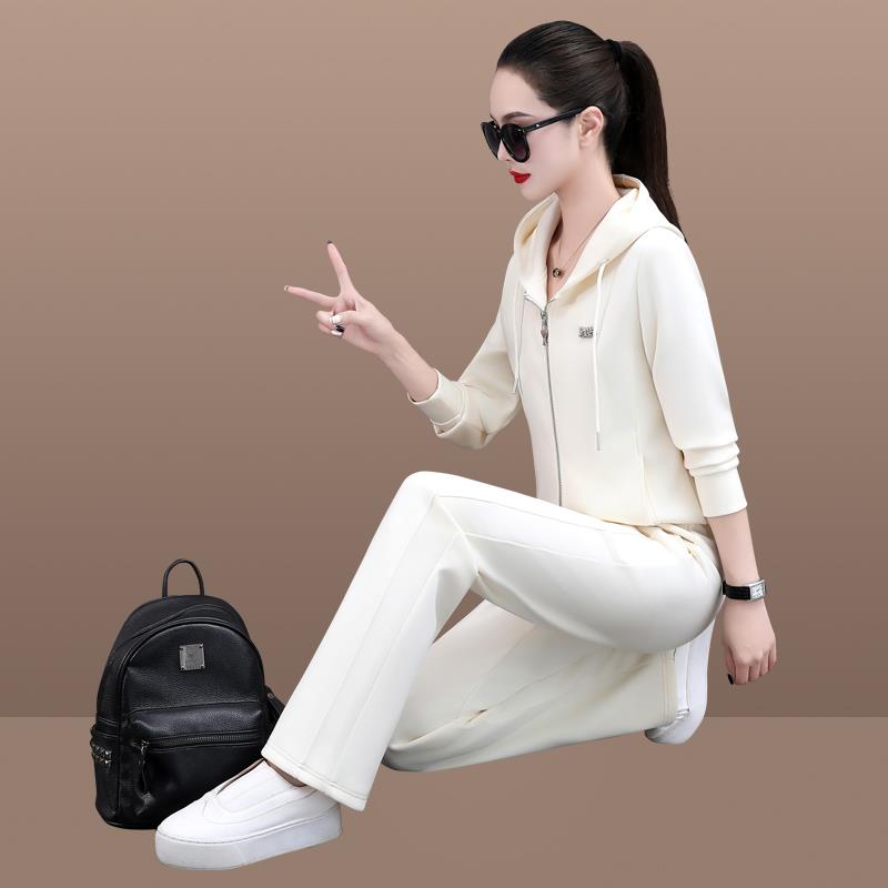 休87664696款闲洋运动套装女士年春秋新脚时髦气立领开衫束裤两件