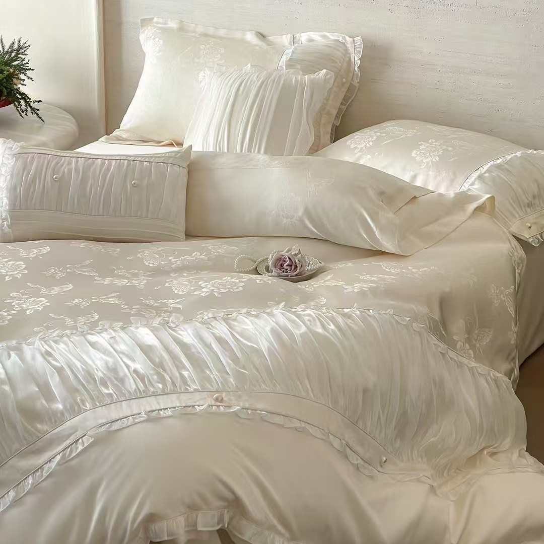 |丝棉天公主肤法式轻透气提花被套亲girlish四高级床上用品奢件套