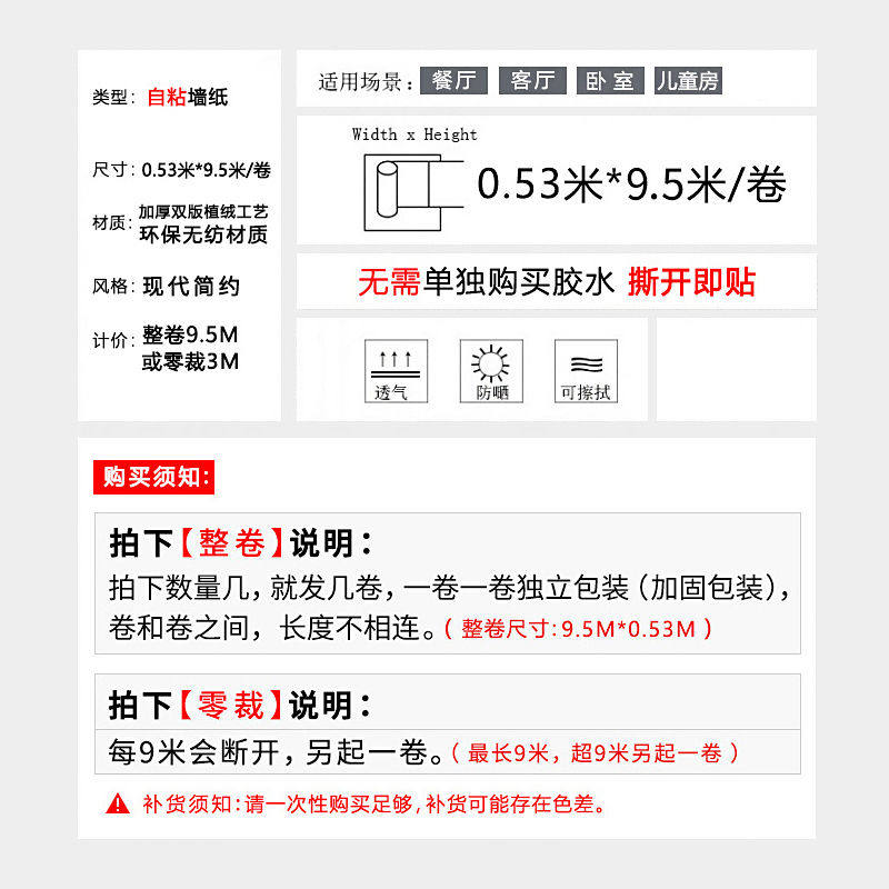 纺布自粘墙纸3D立体墙贴防水防潮温馨卧室房间客厅自贴家用