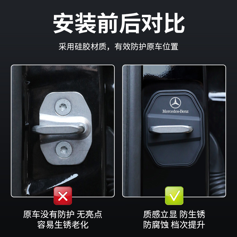 首页> 车品> 适用奔驰门锁扣盖E级C级A级EQA/GLC/GLB/E300L汽车门锁减震保护套