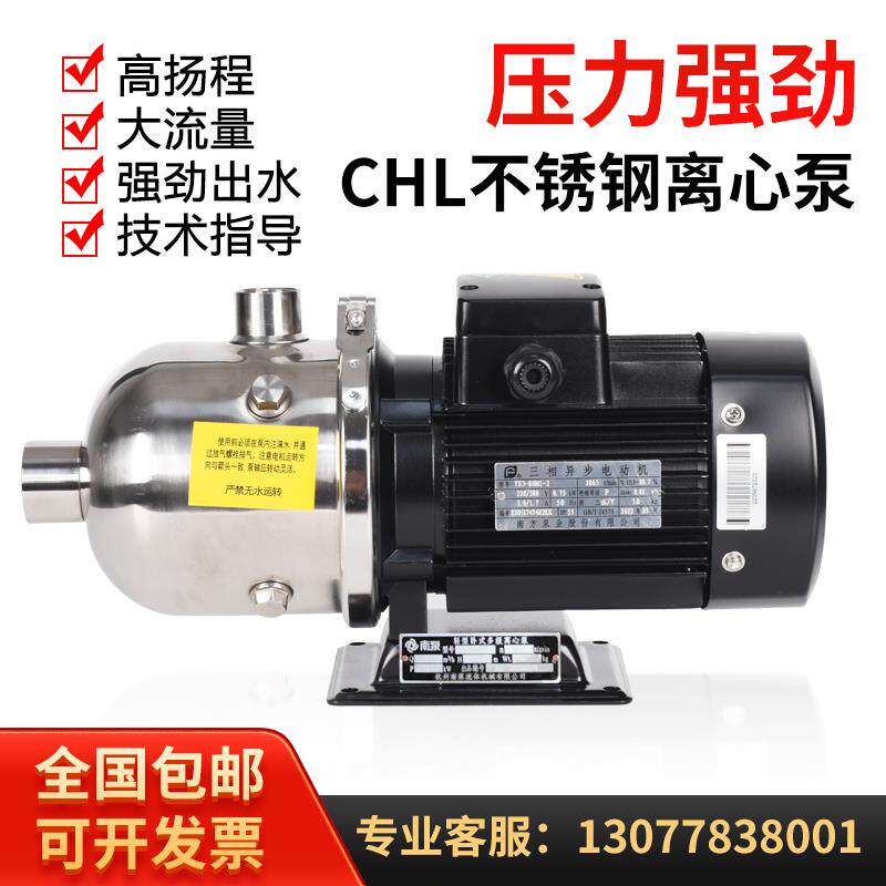 南泵CHL不锈钢多级离心泵轻型卧式增压泵家用管道水泵冷却循