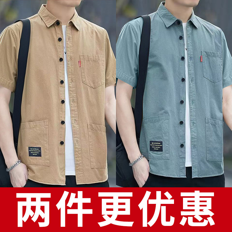 2025男士短袖衬衫工装宽松百搭衬衣男夏季薄款多口袋上衣工装百搭