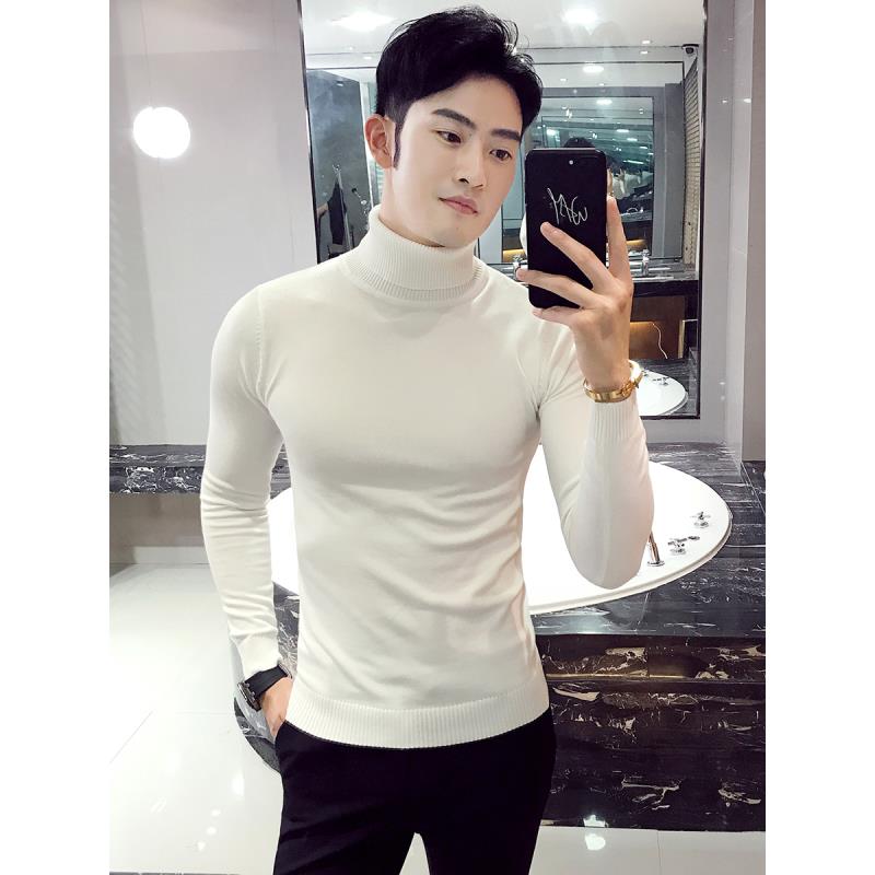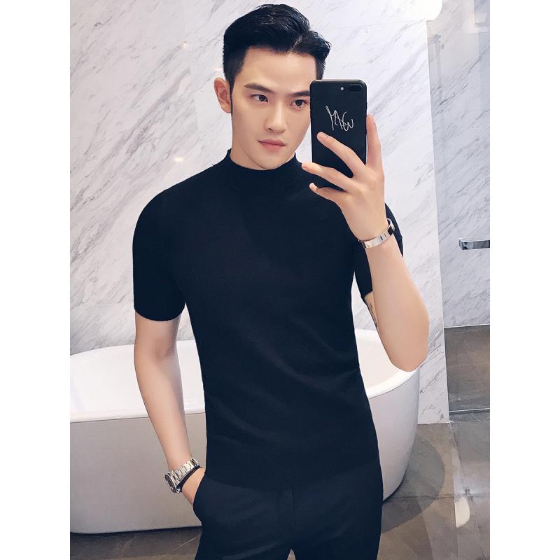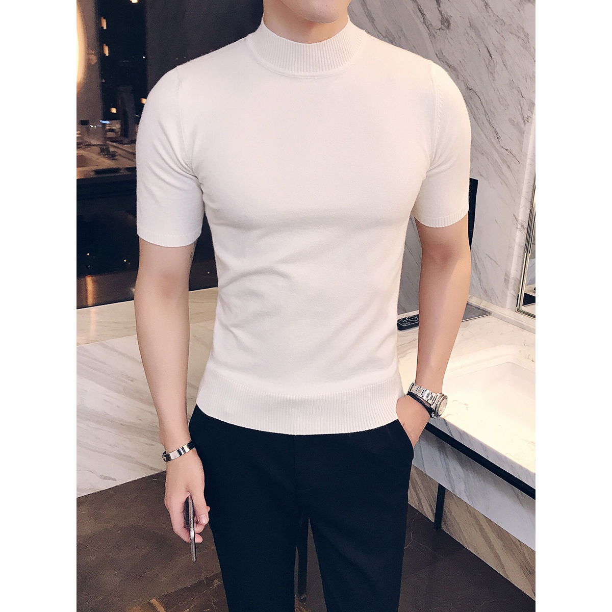 男士毛衣半高领秋冬内搭短袖针织衫男紧身中领纯色线衣修身打底衫