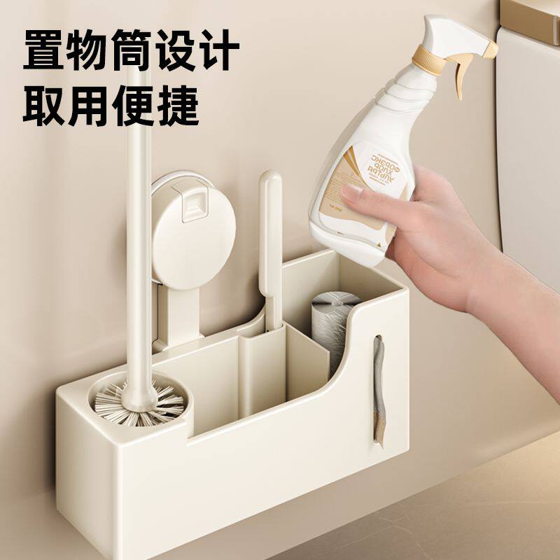 奶白吸盘马桶刷壁挂式墙上洁厕所死角卫生间垃圾袋清洗收纳