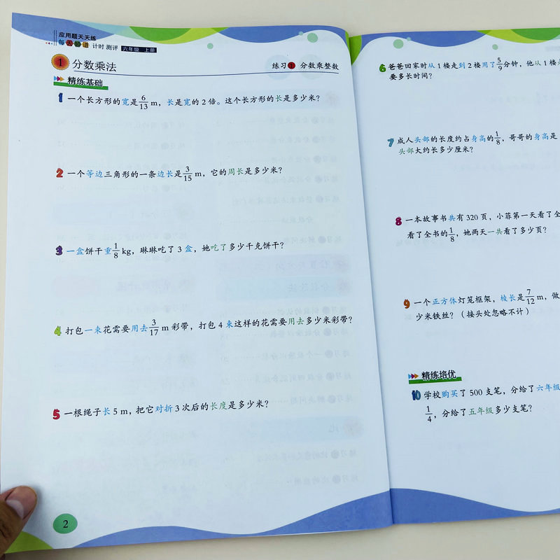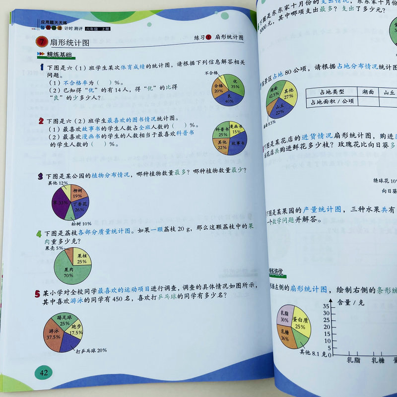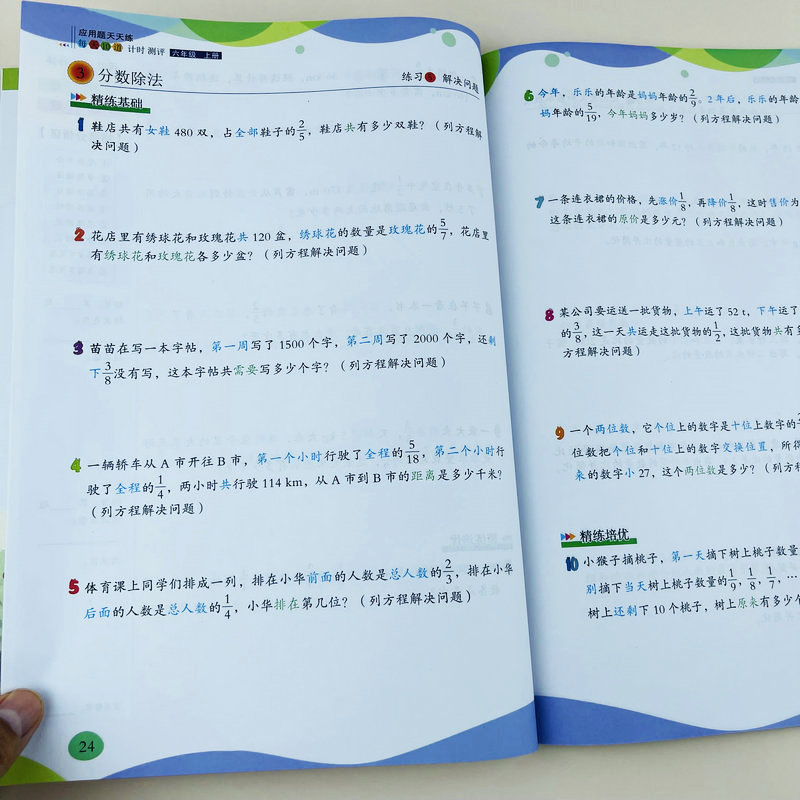 六年级上册每天10道应用题天天练人教版课本同步计时测评解决问题分数乘法分数除法比圆百分数扇形统计图数学广角数与形位置与方向