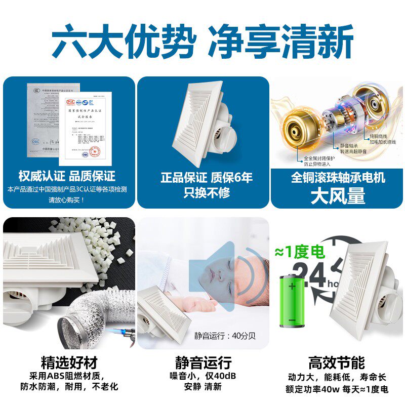 惠普顶集成吊顶排气扇卫生间厨房强力静音天花换气扇吸顶式排风扇
