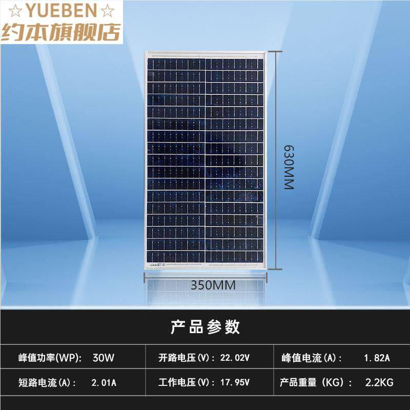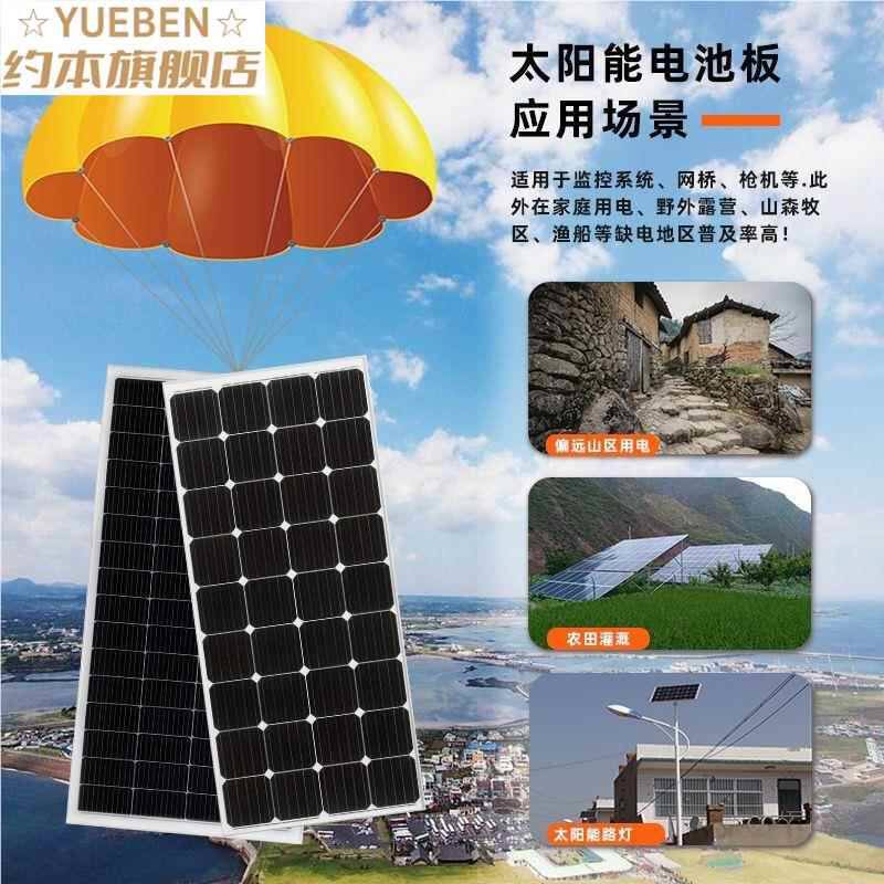 太阳能板12V24V单晶100W200W300W太阳能发电板光伏板家用全新