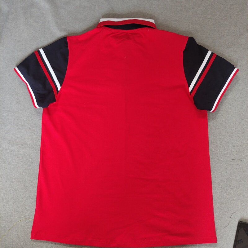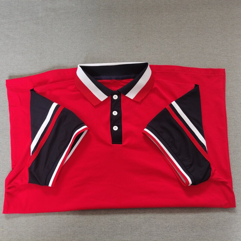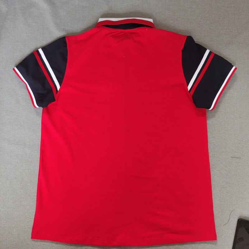 定做夏季男女校服同款上衣短袖红色拼藏蓝色t恤纯棉休闲POLO衫