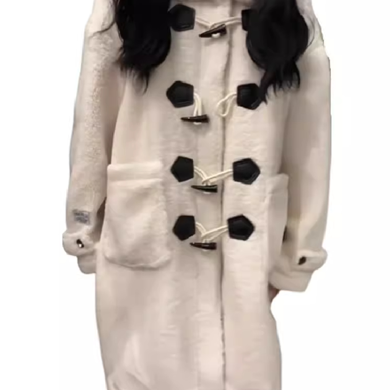 牛角扣小个子白色毛呢子毛绒外套女秋冬季高级感2025新款爆款大衣