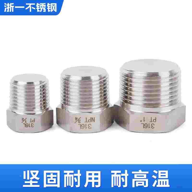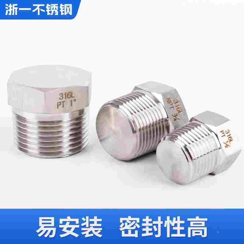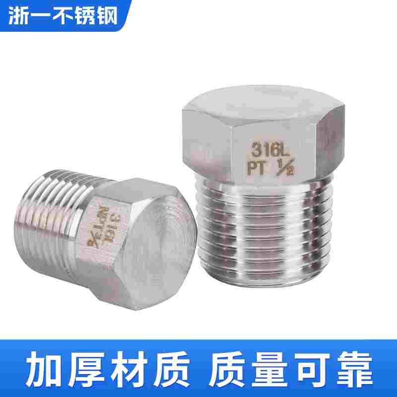 316L不锈钢外丝堵头高压外六角管堵外螺纹实心闷头2分4分外牙堵塞