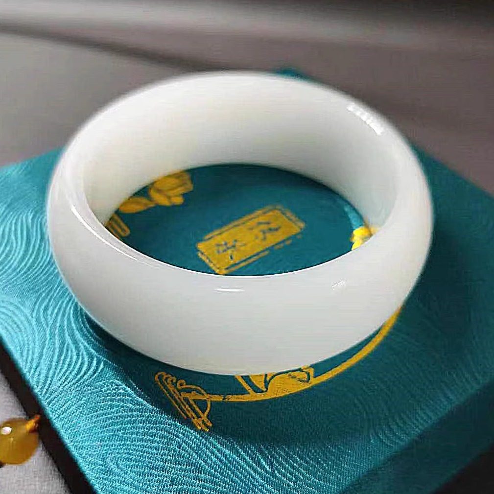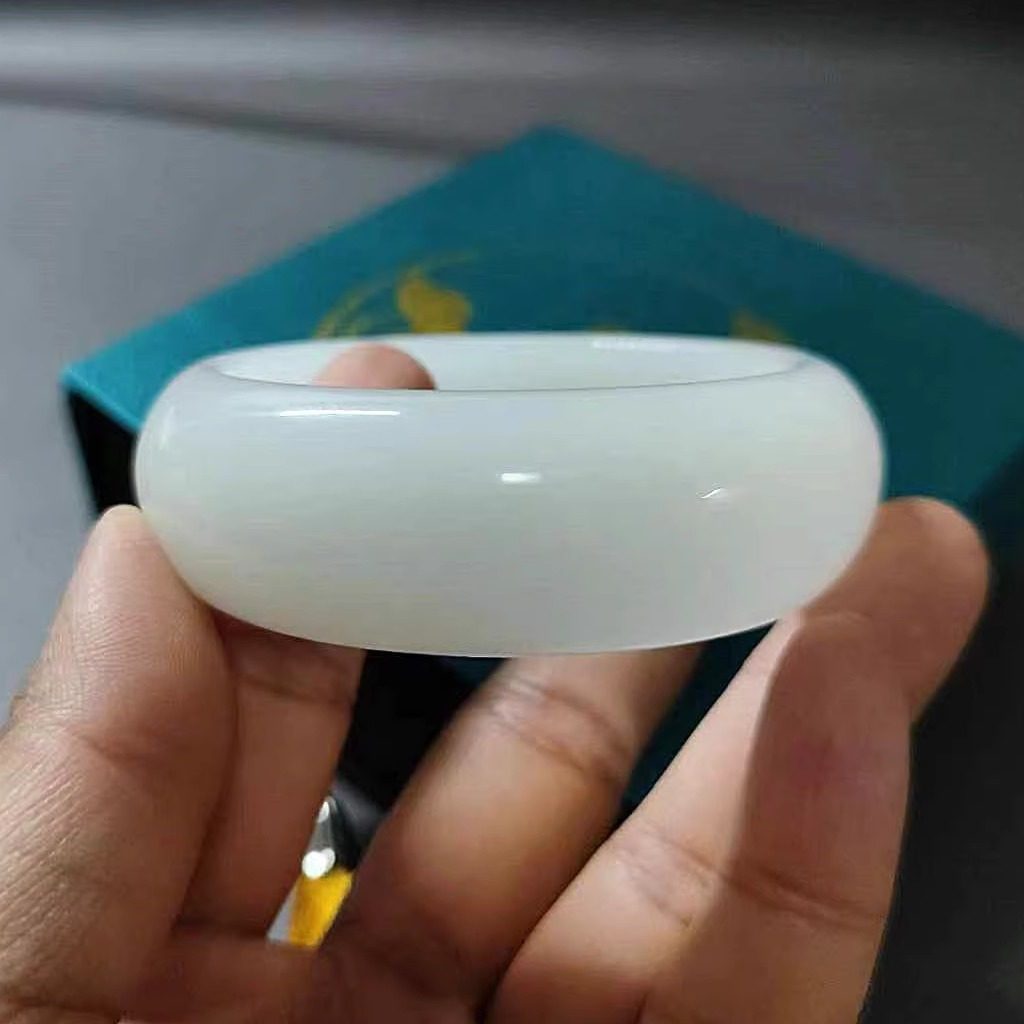 加宽版轮胎手镯天然新疆和田玉羊脂白玉金丝玉宽版手镯昆仑白玉镯