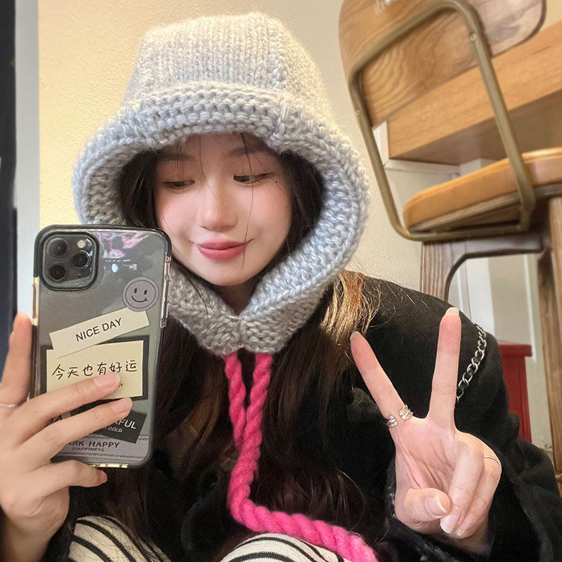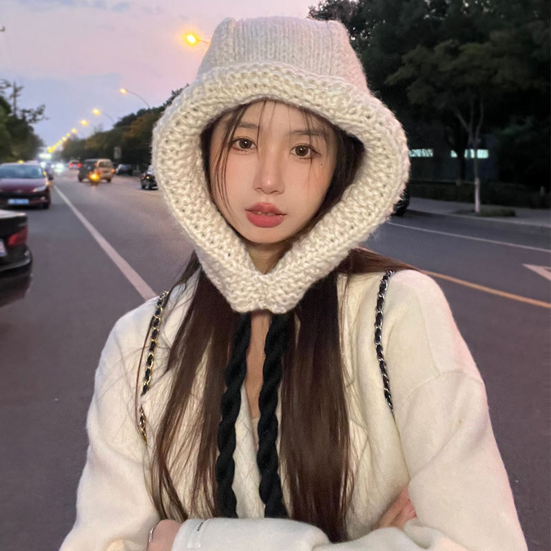韩国巴拉克拉法帽护耳保暖羊毛针织护脖防寒粗毛线雷锋帽子女秋冬