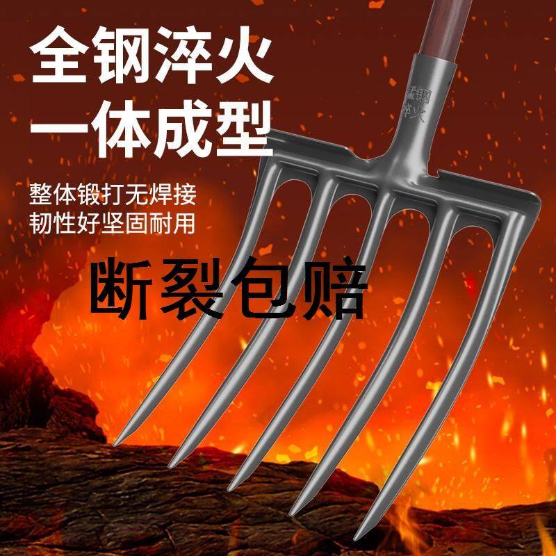 农用翻地松土神器四齿钢叉开荒挖土农具翻土叉子全钢木杆铁叉头五