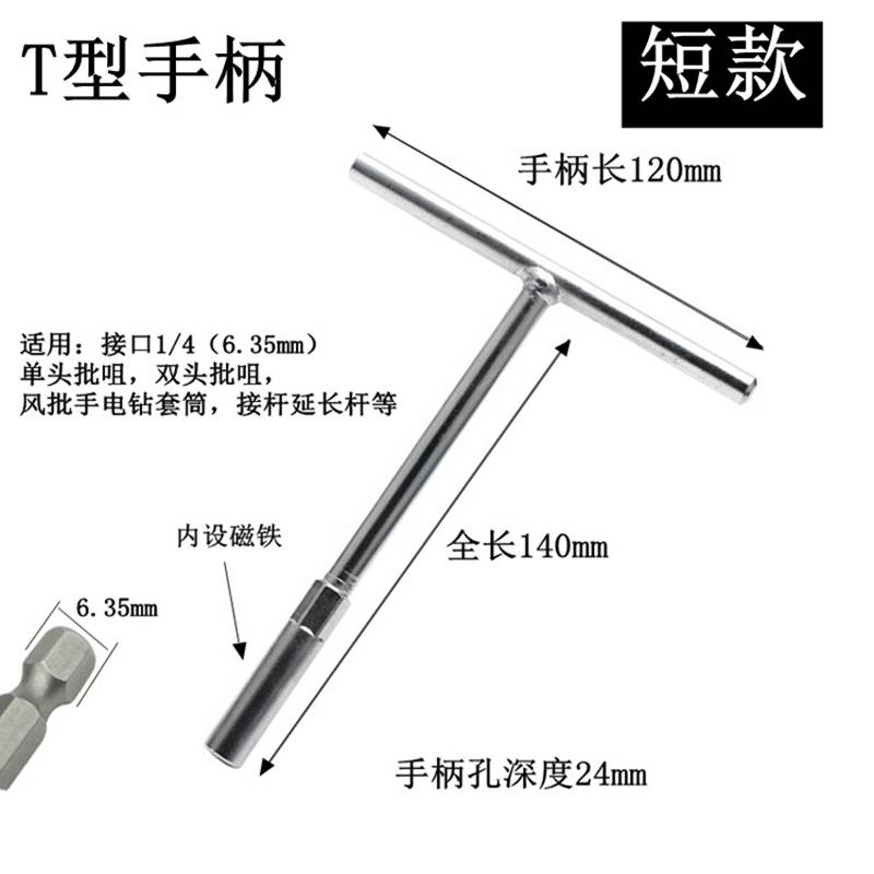 工业级1/4螺丝刀手柄 6.35mm自锁批头伸缩螺丝批 两用磁性T型手柄