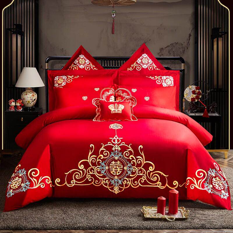 结婚四件套长绒棉全棉新款高端婚庆四件套多件套床上用品一件起批