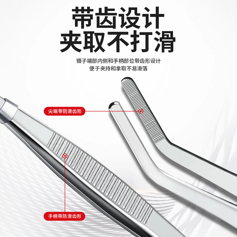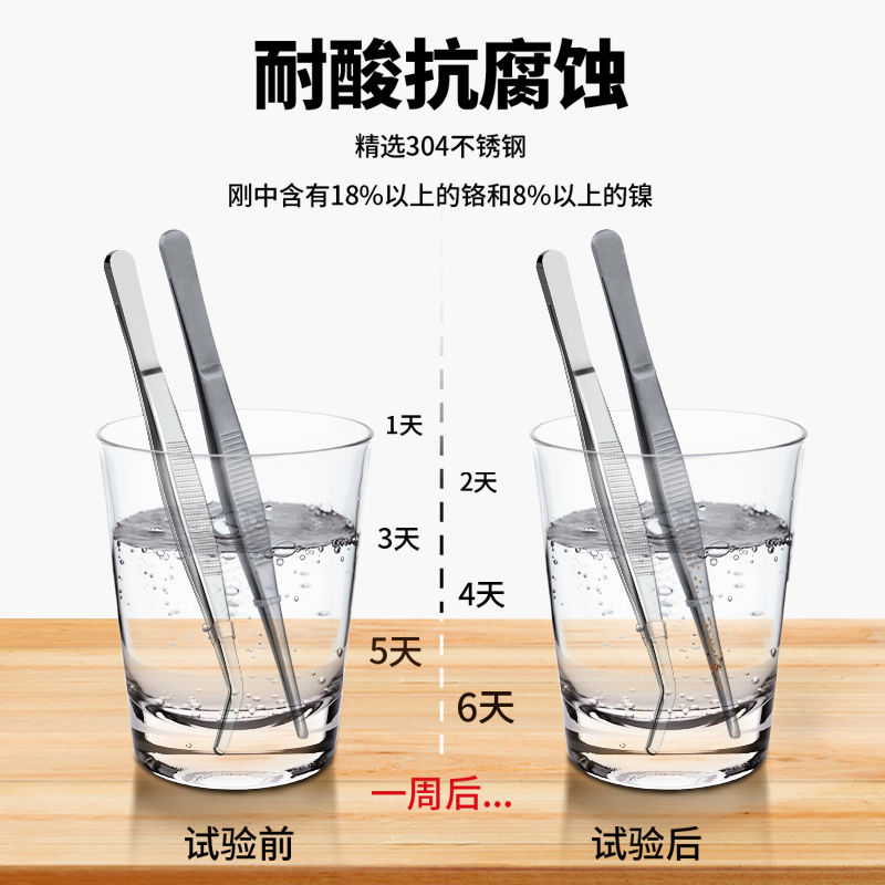 镊子不锈钢弯头手工专用304长镊子取物加长工具多肉园艺长柄夹子