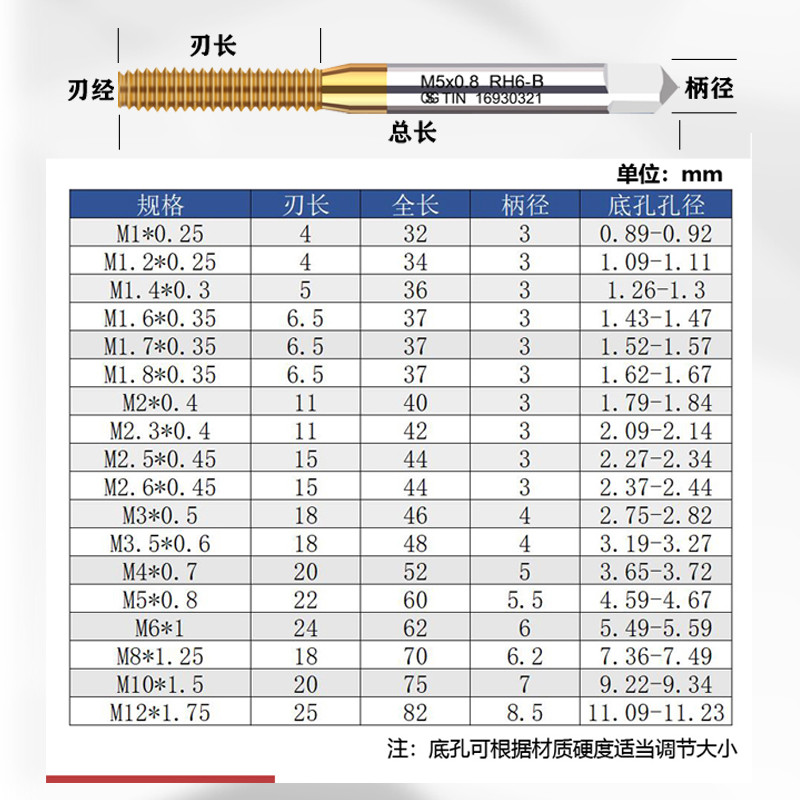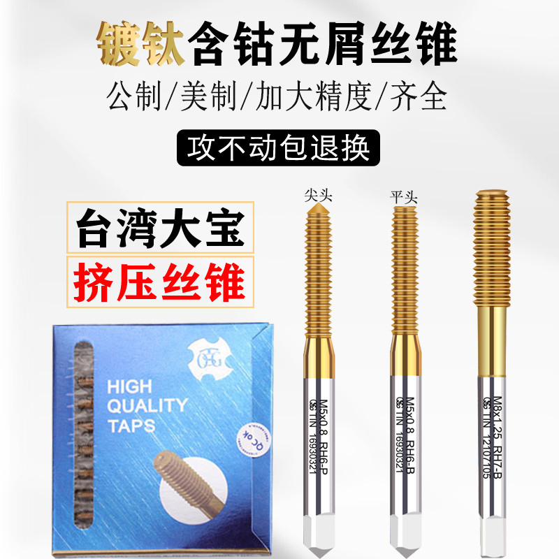 TOSG台湾大宝镀钛挤压丝锥M1.2M2.5M4M5M8M10M12无屑挤压丝攻