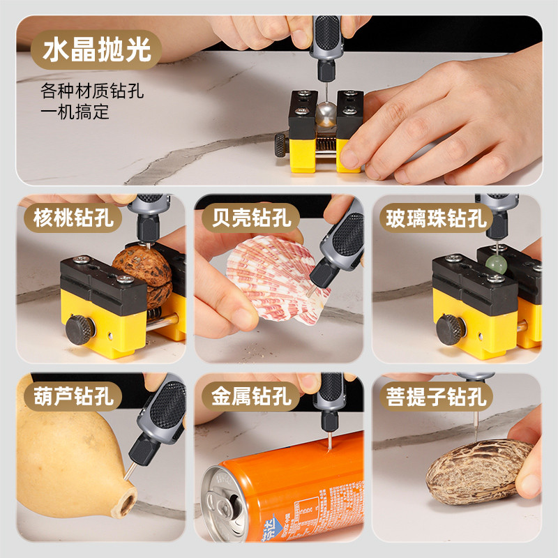 得力珍珠打孔器小型患子文玩核桃玉石串珠电动打孔机迷你小电钻