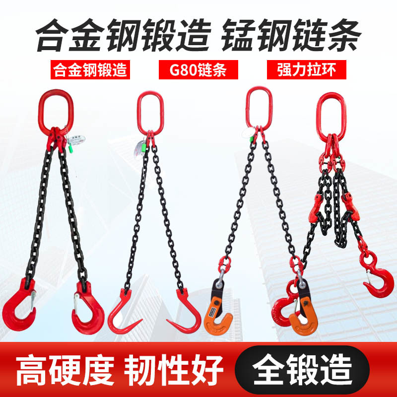 起重链条吊索具四勾行车吊车吊环吊钩挂钩吊链G80锰钢铁链条吊具