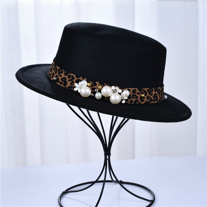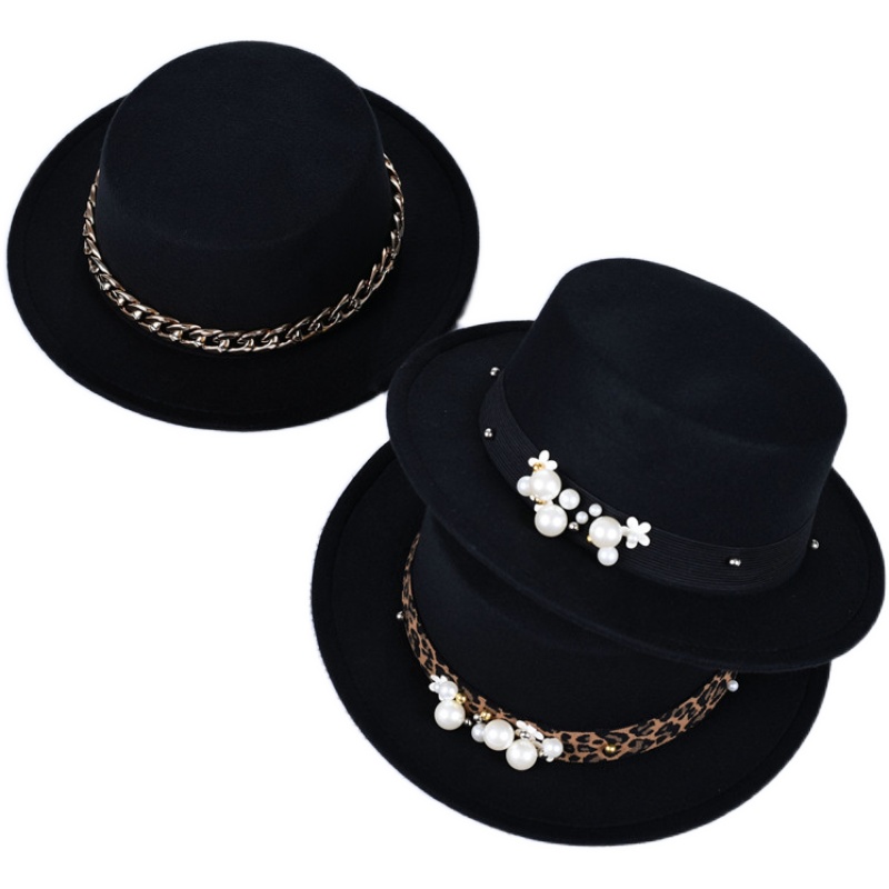 儿童英伦秋冬毛呢帽复古宽檐平顶爵士帽黑色羊毛小礼帽亲子毛毡帽