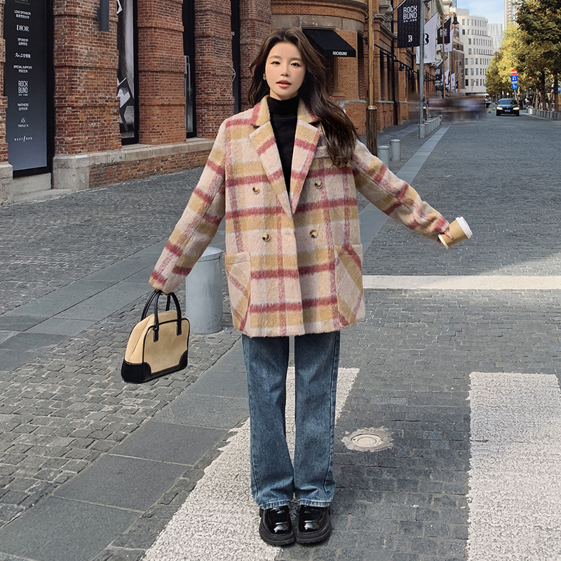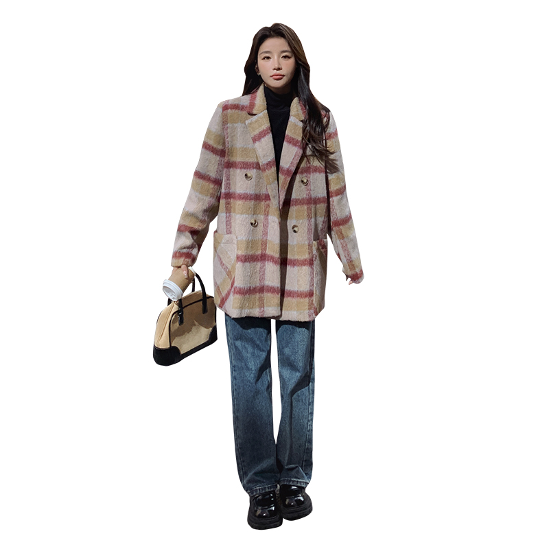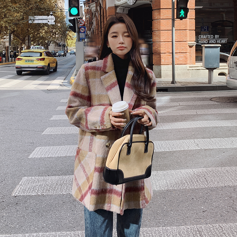 已出货 款号W1061 内胆90白鸭绒 格子西装毛呢外套 P195 控298