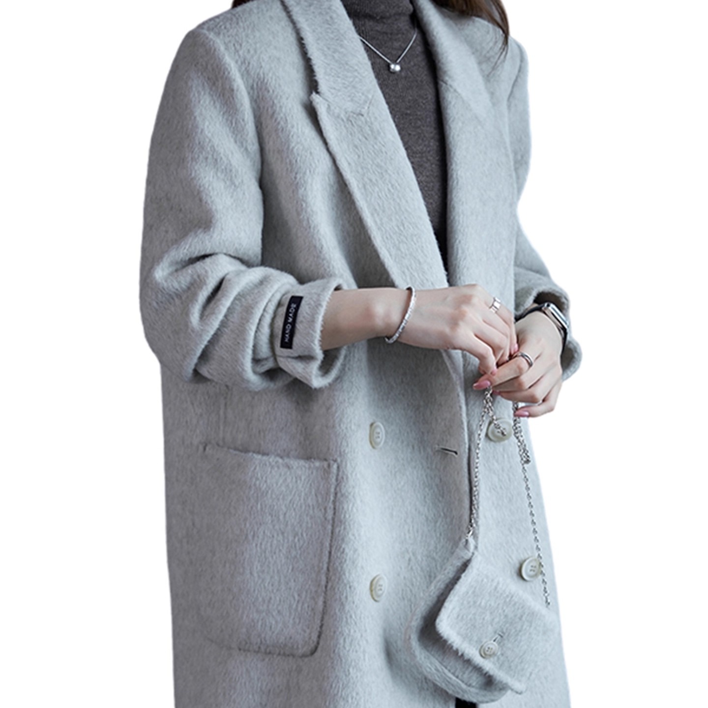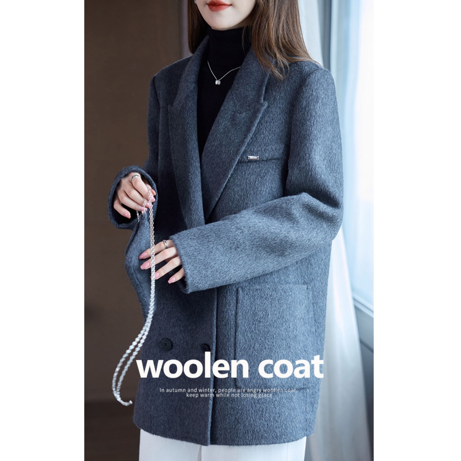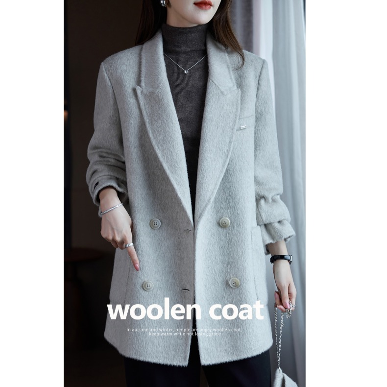 首页> 女装> 深灰色短款毛呢外套女秋冬装辛苦韩版大码胖MM200斤加厚呢子大衣