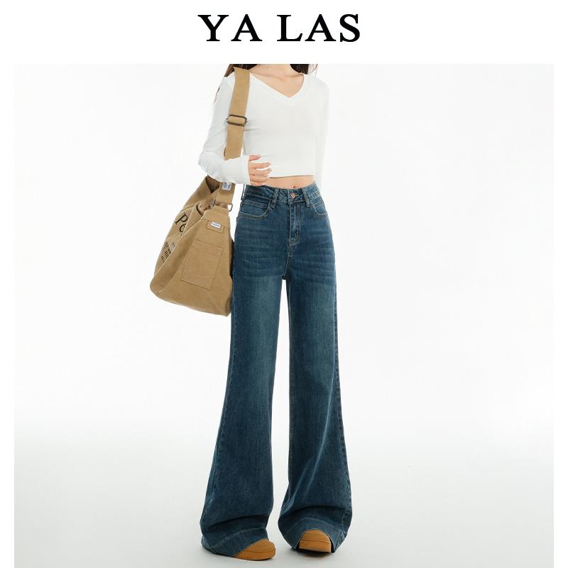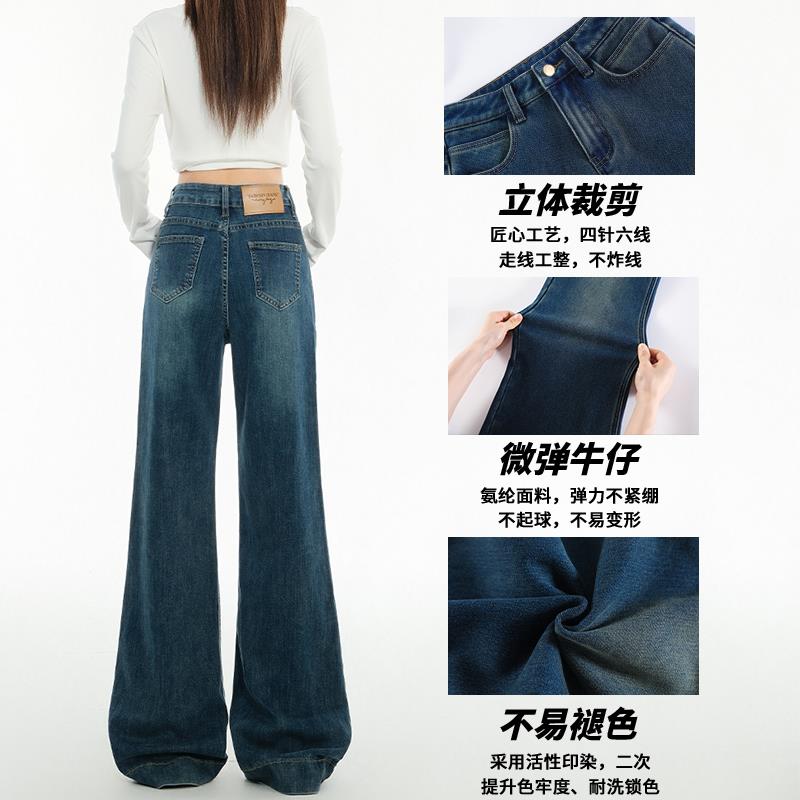 复古蓝微喇直筒牛仔裤女2025春季新款小个子高腰显瘦垂顺阔腿裤子