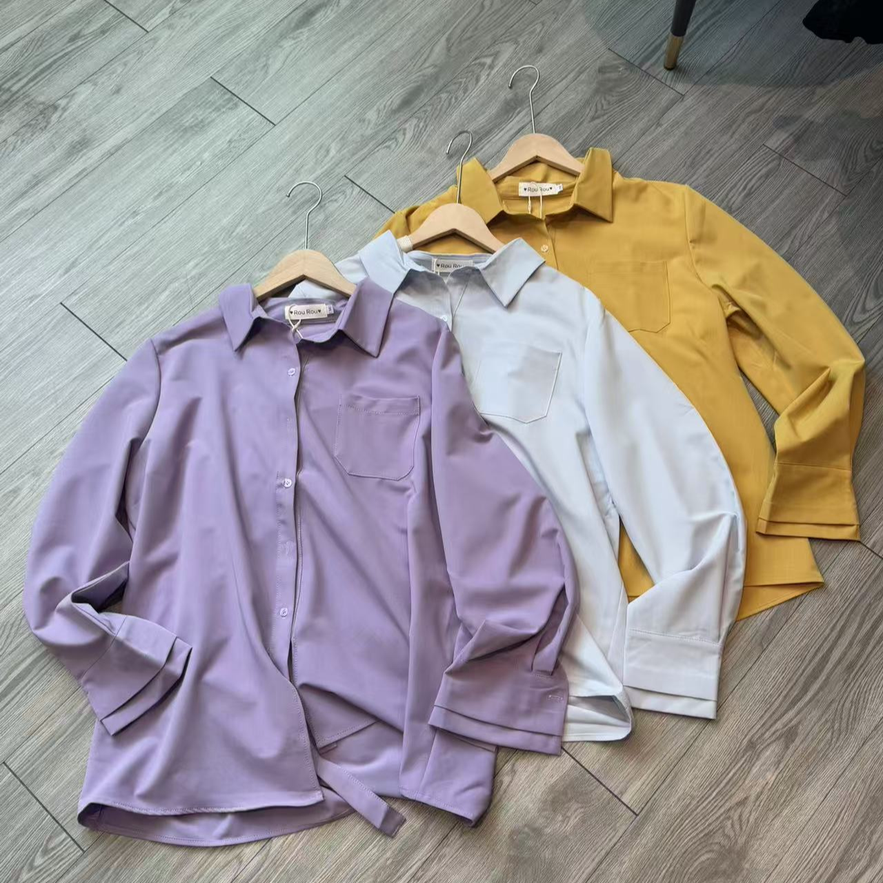 CT168#【微风轻起】不对称飘带正肩直筒衬衫