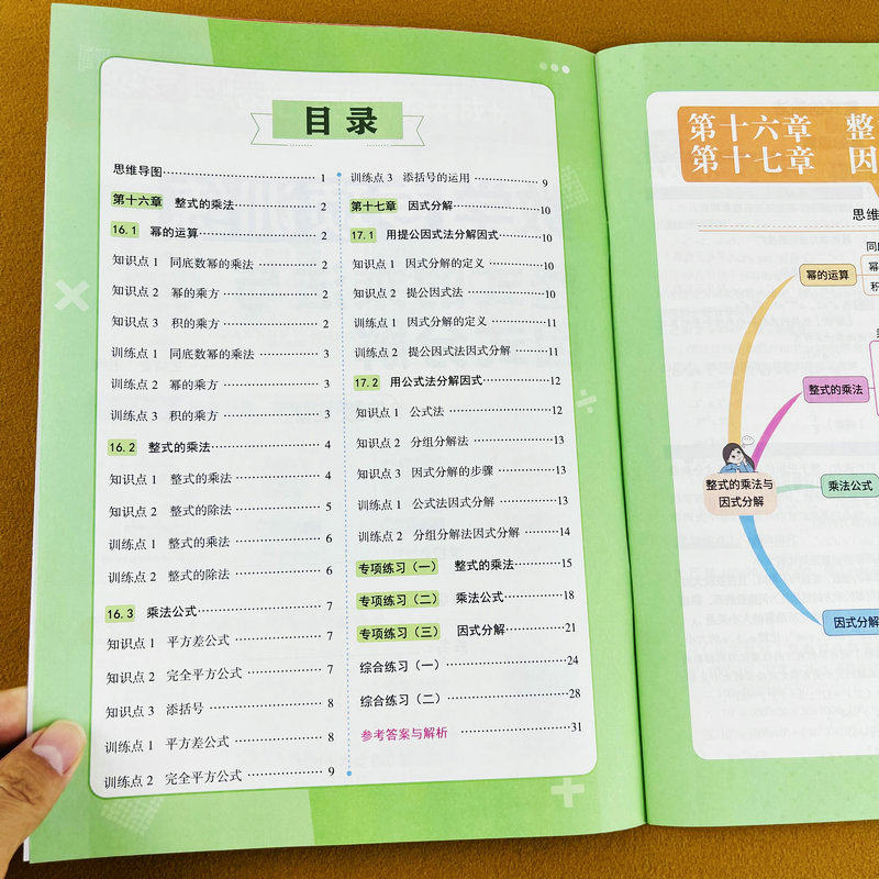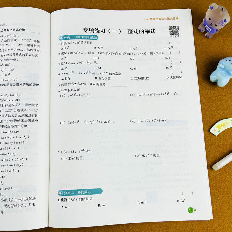 初中八年级上册数学专项训练整式的乘法与因式分解人教版教材同步练习题初二知识点汇总基础训练中考真题模拟练习册专项培优提分