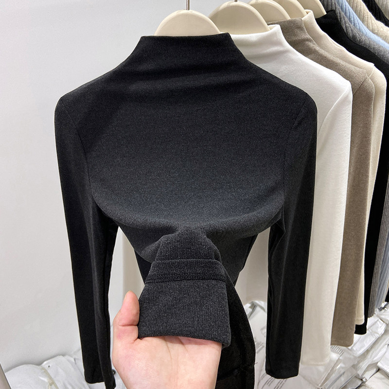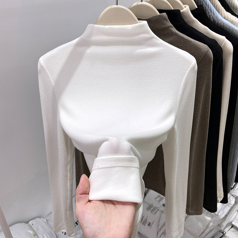 2025秋冬新款半高领慕斯羊绒长袖打底衫女磨毛内搭高级感加绒上衣